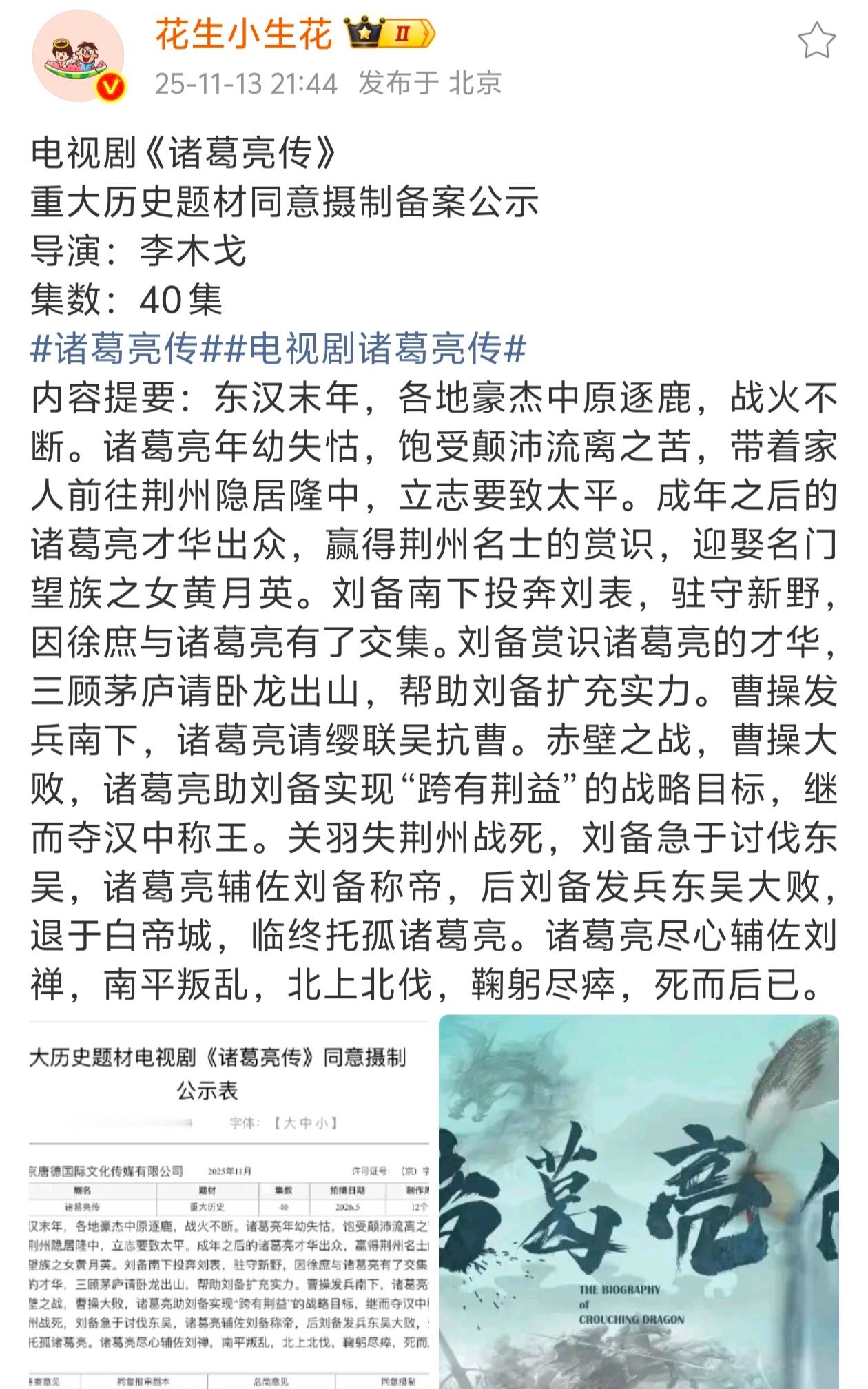 诸葛亮传又有动静了....唐德几年前找的导演就是李木戈诶,现在还是他木戈说英雄后就没拍古装剧,待拍的项目还真不少,已知:唐德的诸葛亮传,耀客的一手遮天,柠萌的恰逢雨连天
