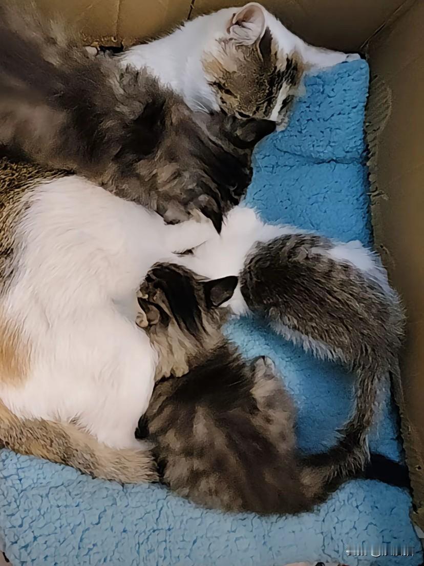 河南郑州,傍晚时分,猫妈妈叼着小猫走进一家牛肉面馆。老板娘上前查看发现小猫已经失温,她没有犹豫便决定救助小猫。 下午五点多快接近六点时,李女士在自己的牛肉面馆里忙活。这时一只猫妈妈叼着一只小猫走进店内。当时店内没有顾客,猫妈妈叼着小猫径直走向李女士。 猫妈妈把叼着的小猫放在李女士跟前,嘴里发出喵喵声,眼神很是急切的望着李女士。好像在说:求求你,救救小猫。 李女士低头看小猫,它浑身湿透,毛发上有水有泥巴有树叶。李女士赶紧伸手拿纸巾想把小猫身上的泥巴和树叶擦掉。 可在李女士的手指触及到小猫身体时,她发现小猫的身体凉冰冰的,没有一点温度。李女士呼唤小猫时,它没有回应,也不会动,身体甚至有些许僵硬。 李女士意识到小猫已经失温。她马上找来一条干净的毛巾为小猫擦拭身上的水,随后又裹着毛巾把小猫抱在怀里,她想用自己的体温去温暖小猫。 经过李女士的救助,小猫在她的怀里慢慢的恢复过来。看到小猫被自己救活,李女士的心里也是很开心。 可她看看外面漆黑的天空,不由得又担忧起来。这两天一直在下雨,而且温度也越来越低。特别是夜里,室外是很冷的。 这小猫或许就是因为天冷又下雨,无处可躲才导致的失温。如果就这样又把小猫放回去,难免又出现这样的问题。 想到这里,李女士找来纸箱,并在纸箱里放了保暖垫,她想把小猫养起来。 猫妈妈看到李女士救活了小猫,它的眼神明显的亮了。对着李女士喵喵的叫,好像在说:谢谢你,大好人。 李女士平时就喜欢猫,并且救助过不少流浪猫。如今,猫妈妈和小猫都在李女士家里养着,它们 过得很快心。