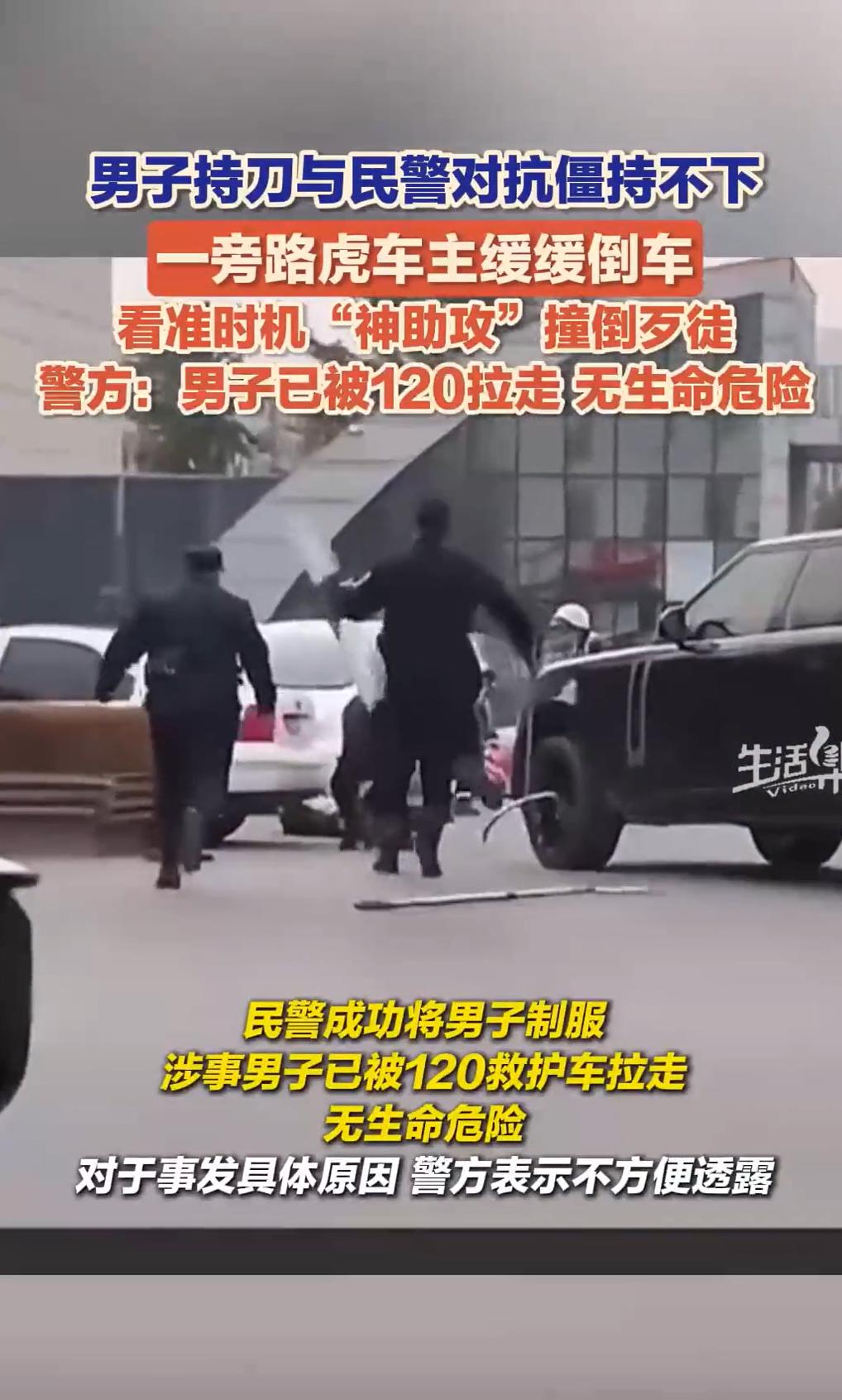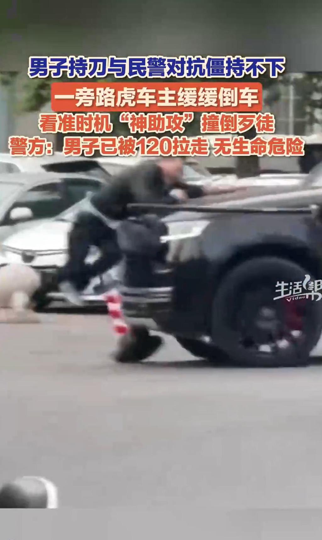 河南郑州,一名持刀男子站立在银行门口,与数名帽子叔叔陷入紧张对峙,帽子叔叔喊话“把刀放下”,但男子当作没听到。不料,就在男子持刀向一侧移动的瞬间,一辆黑色路虎越野车悄悄倒车后调整方向,加速冲向持刀男子,“砰”的一声,男子应声倒地,刀具脱手飞出。几乎同时,现场帽子叔叔迅速上前将其制服。事后,警方确认,被撞男子无生命危险。网友热议:路虎车司机的行为算不算正当防卫?   据悉,2025年11月12日上午,某银行研修中心大门前传来一阵骚动,一名中年男子手持一把明晃晃的刀具,站在人行道中央,与数名帽子叔叔形成对峙,僵持不下。   视频显示,该男子情绪激动,手中刀具不时挥舞,引得周围路人纷纷避让,现场帽子叔叔身着制服,保持警惕,反复喊话:“把刀放下!”   但持刀男子置若罔闻,眼神中透出固执与不安,僵持了数分钟。   期间,他时而踱步,时而站立不动,仿佛在权衡什么,现场气氛紧张,帽子叔叔分工明确:一部分人疏散群众,另一部分人继续沟通,试图化解危机。   就在对峙陷入僵局时,一辆黑色路虎越野车悄然进入画面,驾车者是一名身着便装的男子。   视频显示,这辆路虎原本停靠在路边,司机似乎观察到了现场的危急情况,持刀男子开始向一侧移动,步伐不稳,仿佛要冲向人群或帽子叔叔。   说时迟那时快,路虎车突然倒车,调整方向,随后加速朝持刀男子撞去。   “砰”的一声闷响,持刀男子被撞翻在地,刀具脱手飞出。   现场帽子叔叔反应迅速,一拥而上,将倒地男子牢牢控制。   整个过程不过几秒钟,却像电影片段般惊心动魄。   事后,警方回应,确认持刀男子无生命危险,已被送医治疗,但关于事发具体原因,警方表示“不方便透露”。   有网友说,这位司机的果断行动可谓是“神助攻”,避免了可能发生的流血事件,在那种千钧一发的危急时刻,他的勇气值得肯定。如果不是他及时出手,持刀男子万一冲向人群,后果不堪设想。   也有网友说,虽然理解司机的好意,但开车撞人的方式确实存在风险。如果力度控制不当,很可能造成更严重的后果。   更多网友则是围绕司机的行为是否属于正当防卫而进行讨论,各执一词。   那么,从法律角度,这件事如何评价呢?     1、路虎司机的行为是否构成正当防卫,是否要承担刑事责任或民事责任?   《刑法》第二十条第一款规定:为了使国家、公共利益、本人或者他人的人身、财产和其他权利免受正在进行的不法侵害,而采取的制止不法侵害的行为,对不法侵害人造成损害的,属于正当防卫,不负刑事责任。   本案中,持刀男子持械与帽子叔叔对峙,情况危急,尽管有帽子叔叔在场,但持刀男子并未被有效控制,随时有逃离现场以继续制造危险可能,此时,任何延误都可能导致无法预料的严重后果,男子的持刀行为此刻对公共安全构成现实、紧迫的威胁,不法侵害正在进行。   路虎司机之所以驾车撞击的目的是为了制止该侵害,保护帽子叔叔和公共安全,撞击对象是不法侵害人本人。   而路虎司机行为虽然造成了一定损害,但未造成对方重伤、死亡等重大损害,况且面对持刀暴 力侵害,采取具有一定强度的手段进行制止是必要的。   此外,路虎司机撞击行为直接导致了持刀威胁的消除,为帽子叔叔最终制服嫌疑人创造了决定性条件。   所以,路虎司机的撞击行为应该认定为正当防卫,且未超出必要限度,大概率不承担刑事责任。   同时,《民法典》第一百八十一条规定:因正当防卫造成损害的,不承担民事责任。正当防卫超过必要的限度,造成不应有的损害的,正当防卫人应当承担适当的民事责任。   结合前述,由于司机的防卫行为合理且未过当,路虎司机原则上不应承担对持刀男子的医疗费、误工费等民事赔偿。   不过,在司法实践中,持刀男子或其家属仍有可能向路虎司机提起民事诉讼,但结果应该不会不利于路虎司机。   2、持刀男子涉嫌刑事犯罪。   《刑法》第二百七十七条规定,以暴力、威胁方法阻碍国家机关工作人员依法执行职务的,处三年以下有期徒刑、拘役、管制或者罚金。   具体到本案,持刀男子无论因为什么原因制造了本次事件,但其在警方到处后,有义务配合调查,而不是持刀相向。   男子持刀与帽子叔叔对峙,严重影响了秩序安全,也妨碍了警方依法执行职务,依法可以妨碍公务罪追究其刑事责任。   此外,男子对峙行为社会危害性大,同时还涉嫌寻衅滋事罪、以危险方法危害公共安全罪,构成想象竞合犯,依法应当择一重处。   即便,持刀男子不被追究刑事责任,其行为也达到了治安违法程度,违反了《治安管理处罚法》中关于威胁他人人身安全、扰乱公共秩序、阻碍执行职务的规定,依法可以对其处拘留及罚款处罚。   对此,您怎么看?