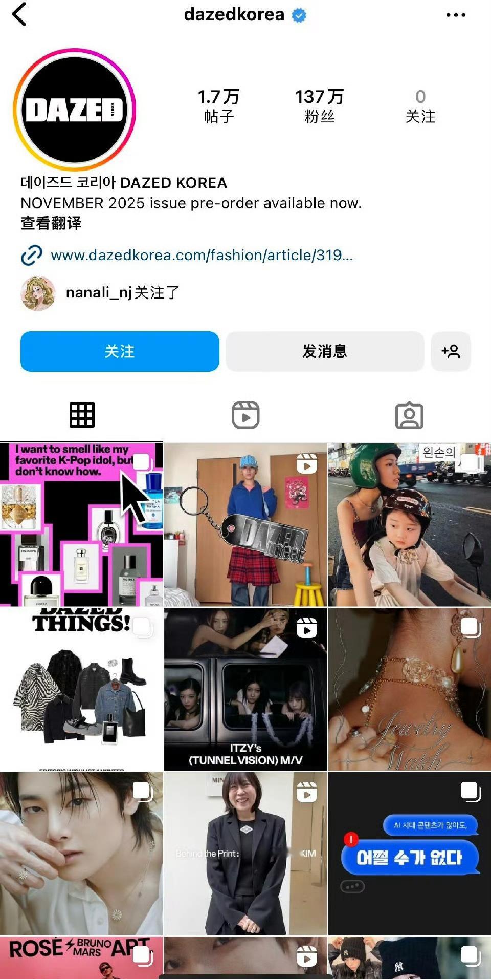 韩国一线与W齐名的杂志《Dazed Korea》因为联系不上赵露思,直接在赵露思ins下求封面?