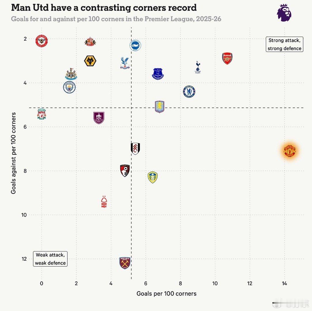 曼联10月份后不败,要感谢角球。说到定位球肯定想到阿森纳,但曼联这个赛季角球成功率则领先众雄。防守端每100个角球丢7.1个的比率确实存有隐患,但在进攻端每100个角球进14.3个的比率不容忽视。这也是他们现在失球倒数第六,还能排在第7的主要原因。卡拉格评价这个赛季的足球已经退步,尤其对界外球作为进攻手段不以为然。然而足球相对的直接、简单,让英超节奏更快、攻防转换次数更多,视觉冲击也更强。也正是如此,像桑德兰、伯恩茅斯这样的球队才会更有机会对传统强队“发难”。