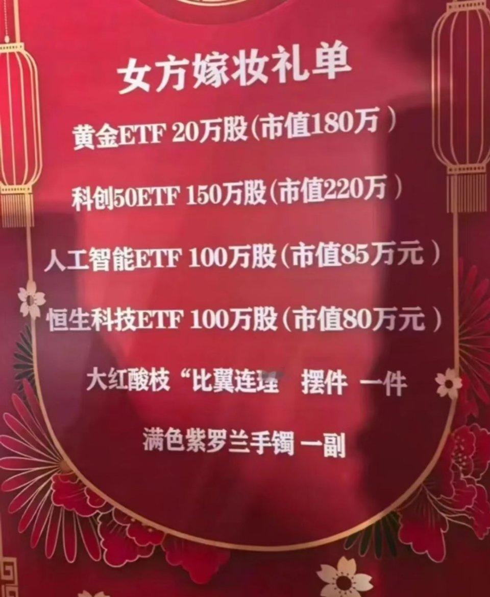 最近很火的,金融女的新三金嫁妆