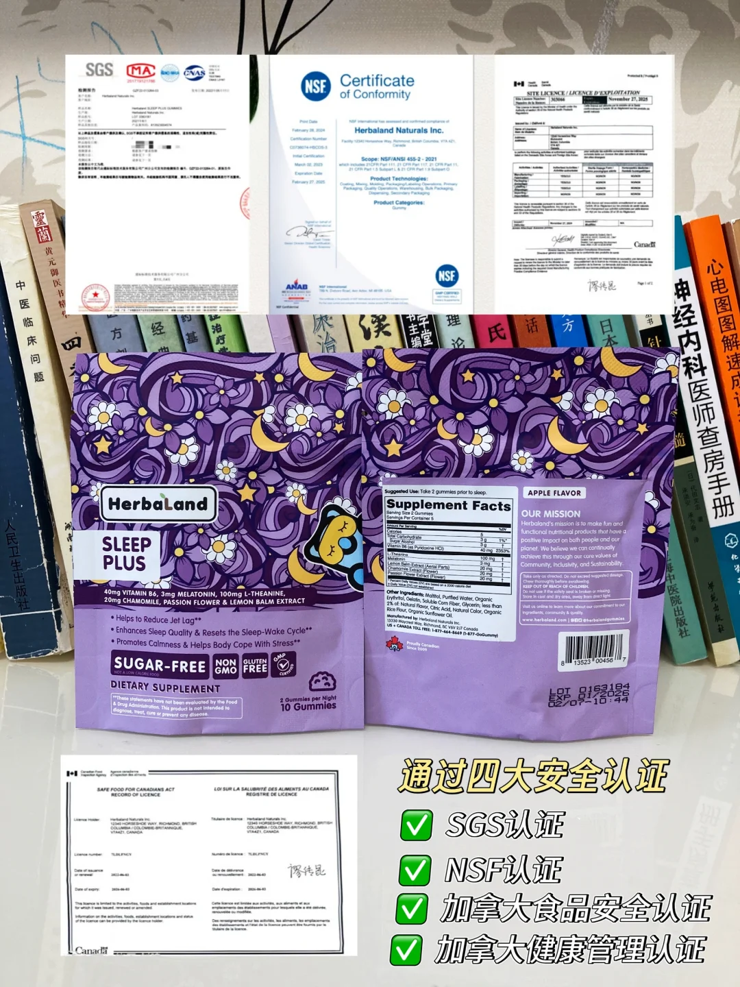 🌴Herbaland禾宝蓝褪黑素每两粒软糖就含有3mg的褪黑素,这个量是在NMPA推荐的范围内的,褪黑素可以调节生物钟,调节睡眠,复配了40mg的维生素B6,更加科学。