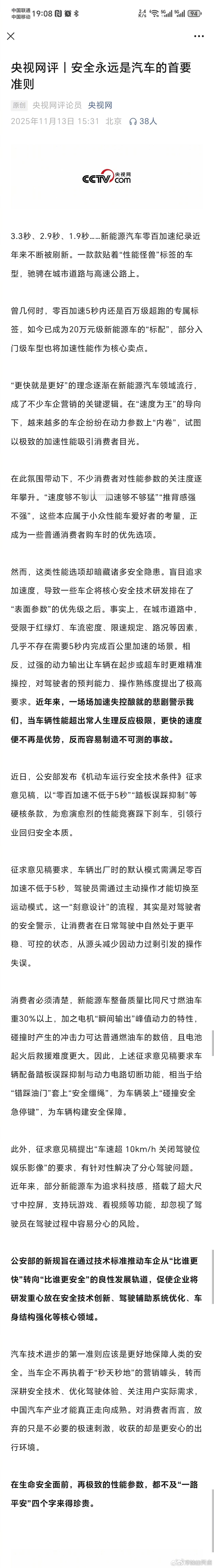 央视网评来了:安全永远是汽车的首要准则再极致的性能参数,都不及“一路平安”