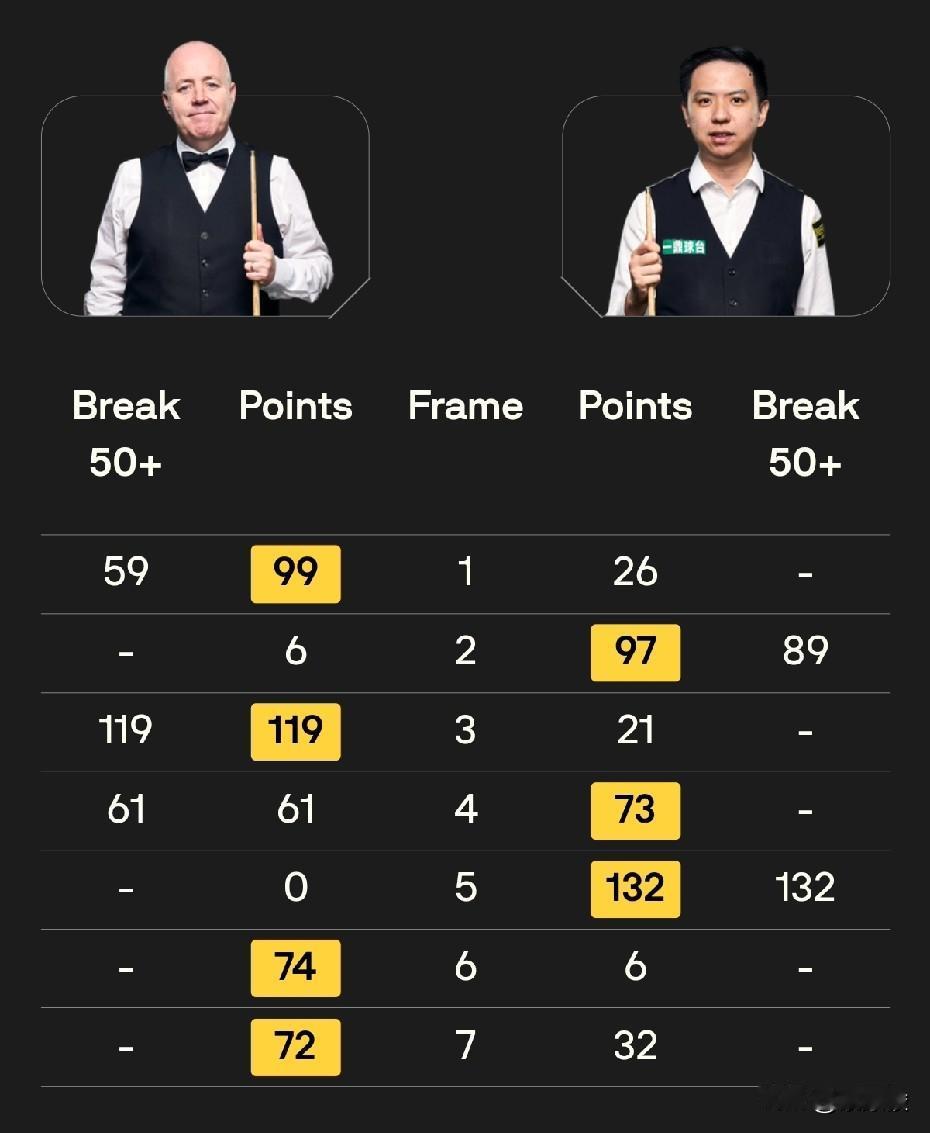 肖国栋3-4被希金斯逆转绝杀,一轮游出局。肖国栋状态确实不好,简单失误多,长台准度也不好。 第一局,肖国栋拿到15分后中袋出现关键失误,希金斯拿下。第二局,肖国栋97-6扳平。第三局,肖国栋拿到21分,打中袋红球不进,留给希金斯机会,希金斯一杆119分获胜,2-1领先。 第四局,希金斯率先拿到61分,被肖国栋的高质量斯诺克难住,罚了不少分,最终肖国栋逆转,2-2,双方战平。 受到第四局被逆转的影响,希金斯准度下降,第五局,肖国栋打出单杆132分,第一次反超比分,并拿到赛点。 第六局,希金斯74-6挽救赛点,比赛进入决胜局。 决胜局,肖国栋打散红球堆,但粉球意外摔袋,希金斯见没有机会,让肖国栋继续击打,之后希金斯觅得机会上手,由于黑球和粉球被挡住,因此涨分很慢。之后希金斯又上手拿到68分,超一分,薄红球不进,没能扩大超分优势。 肖国栋落后一分还有机会,可惜追了32分后,还是没能翻盘,连丢两局,3-4被希金斯逆转绝杀。 肖国栋最近状态确实不好,简单球失误太多,长台准度不行,防守也不到位。 希金斯获胜后,将在明天凌晨3点与尼尔·罗伯逊争夺冠中冠最后一个四强席位。稍早结束的第一轮比赛,尼尔·罗伯逊4-1大胜福德。