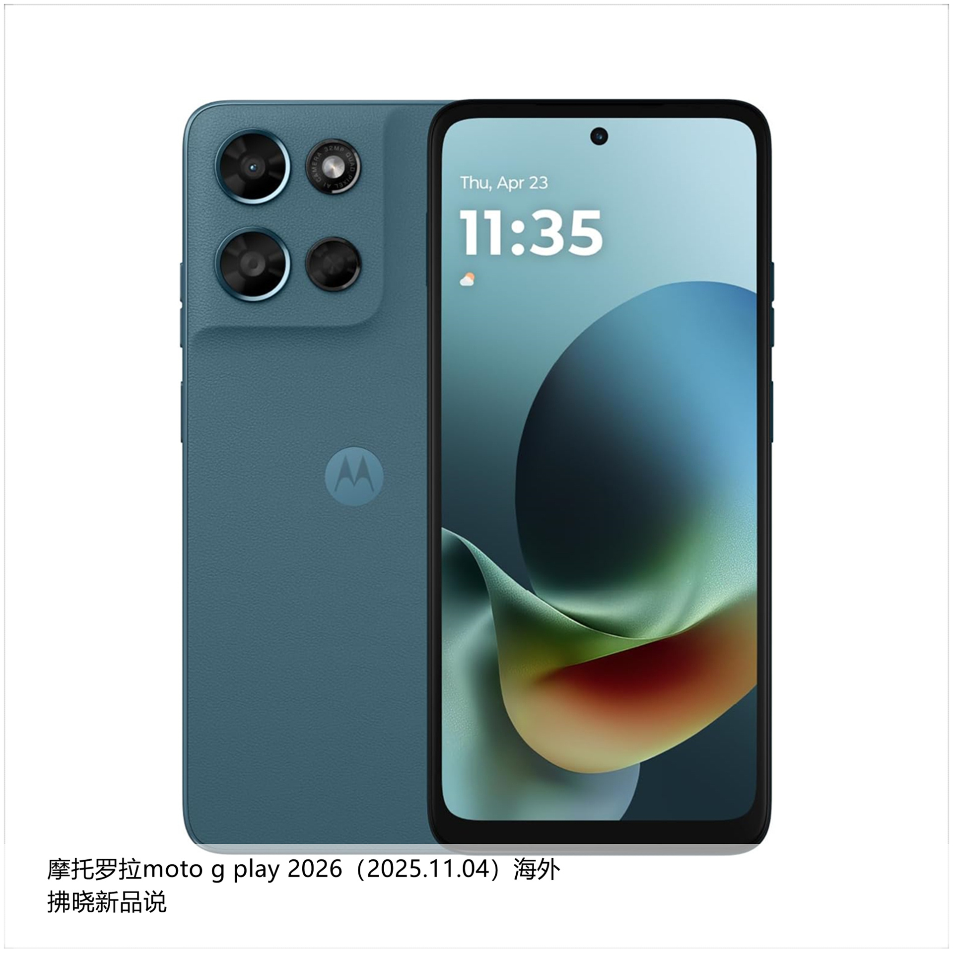 【拂晓新品说】摩托罗拉moto g 2026(海外):- 发布时间:2025年11月04日;- 处理器:联发科 天玑6300;- 存储:?;- 屏幕:6.7英寸LCD居中打孔屏、1604×720分辨率、120Hz屏幕刷新率、262 PPI、1000nit峰值亮度、84%屏占比、康宁大猩猩玻璃3、;- 影像:后置5000万像素镜头(f/1.8)+200万像素微距镜头(f/2.5)“双摄”,前置3200万像素镜头(f/2.2)“单摄”;- 续航:5200mAh电池+30W有线充电;- 其他:侧边指纹识别、3.5mm耳机接口、NFC、立体双扬+双麦克风、IP52、支持Micro SD卡扩展(至高1TB);预装基于Android 16的操作系统,机身厚度约8.44mm,净重约202g;始发“蓝色、兰花色”两个版本,定价约1419(4GB+128GB)。· 摩托罗拉moto g play 2026(海外):充电功率降至18W,后置3200万像素镜头(f/2.2)“单摄”,前置800万像素镜头(f/2.0)“单摄”,始发“蓝色”一个版本,定价约1206(4GB+128GB)。★注:相关数据源于网络,不同地区版本或略有差异,最终以官方信息为准。