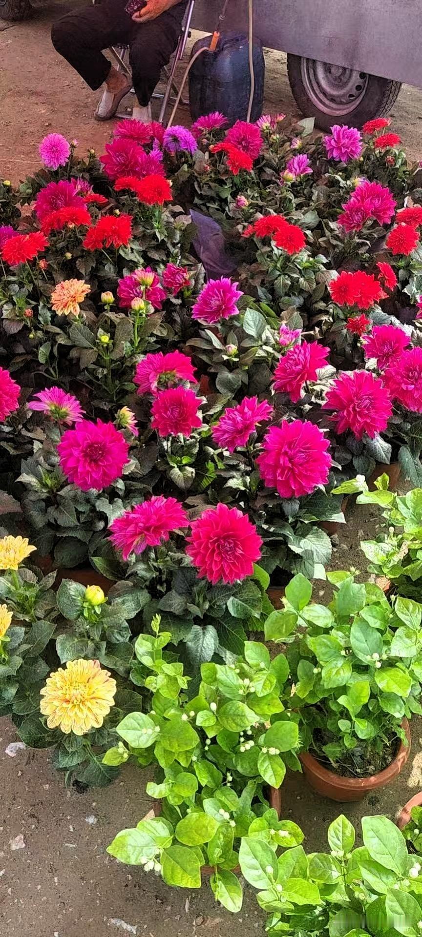 大家早上好! 今早晨跑撞大运! 街边这堆大丽花直接把我美醒—— 红的像炸开的绒球,粉的嫩到晃眼,还有朵黄白渐变,像裹了层奶油糖霜! 大爷坐小马扎上晃悠,水壶撂旁边,花盆排得比我晨跑步点还齐。 这哪是摆摊啊,分明是把半片春天揣这儿了! 困劲儿瞬间蒸发,蹲那儿盯了好久才挪脚—— 原来生活的甜,就是路边撞进眼里的一丛花,连风都沾着香~