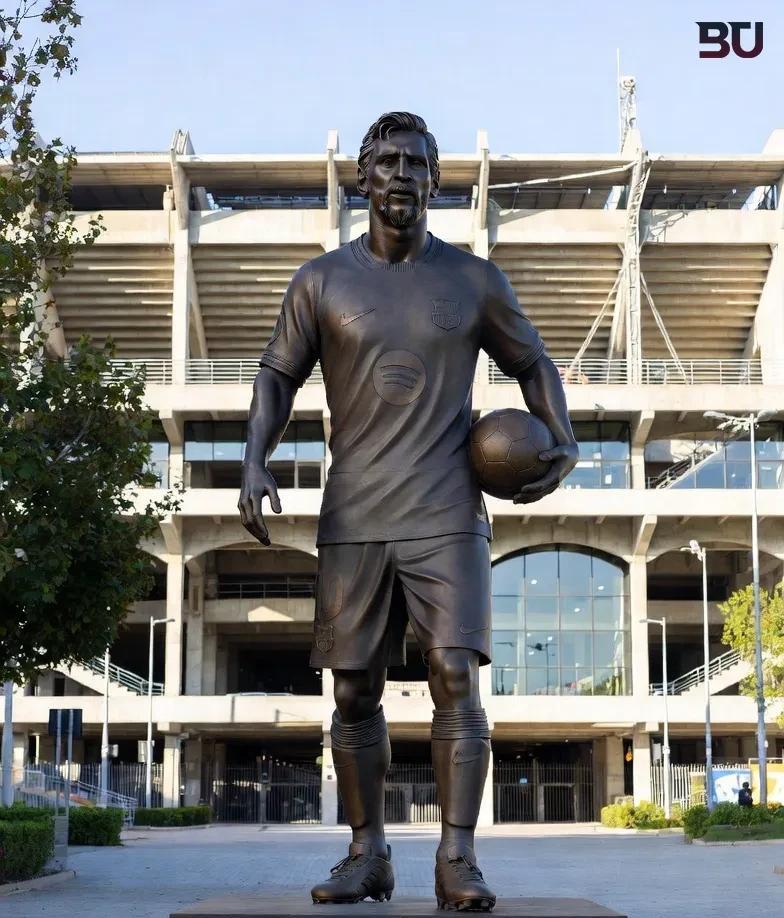 - 2027年,莱昂内尔·梅西身穿巴塞罗那球衣踢完他的最后一场足球比赛。 - Spotify诺坎普球场座无虚席,超过10万名球迷到场见证了这一历史性时刻。 - 巴塞罗那传奇球星与梅西队友(包括普约尔、皮克、哈维、伊涅斯塔)之间的友谊赛,两队各队参赛。 路易斯·恩里克和佩普·瓜迪奥拉分别执教两队 观众们向这位球员致以崇高的敬意,重温他最精彩的进球。 比赛结束时,巴萨在诺坎普球场外揭幕了这座令人惊叹的雕像,永远铭记这位史上最佳球员。