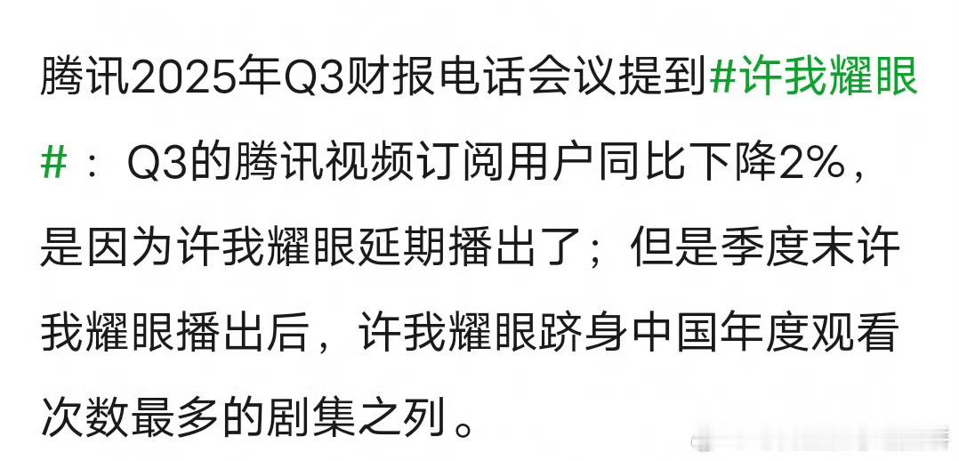 腾讯认为Q3会员用户数量下降,是因为赵露思的《许我耀眼》播迟了