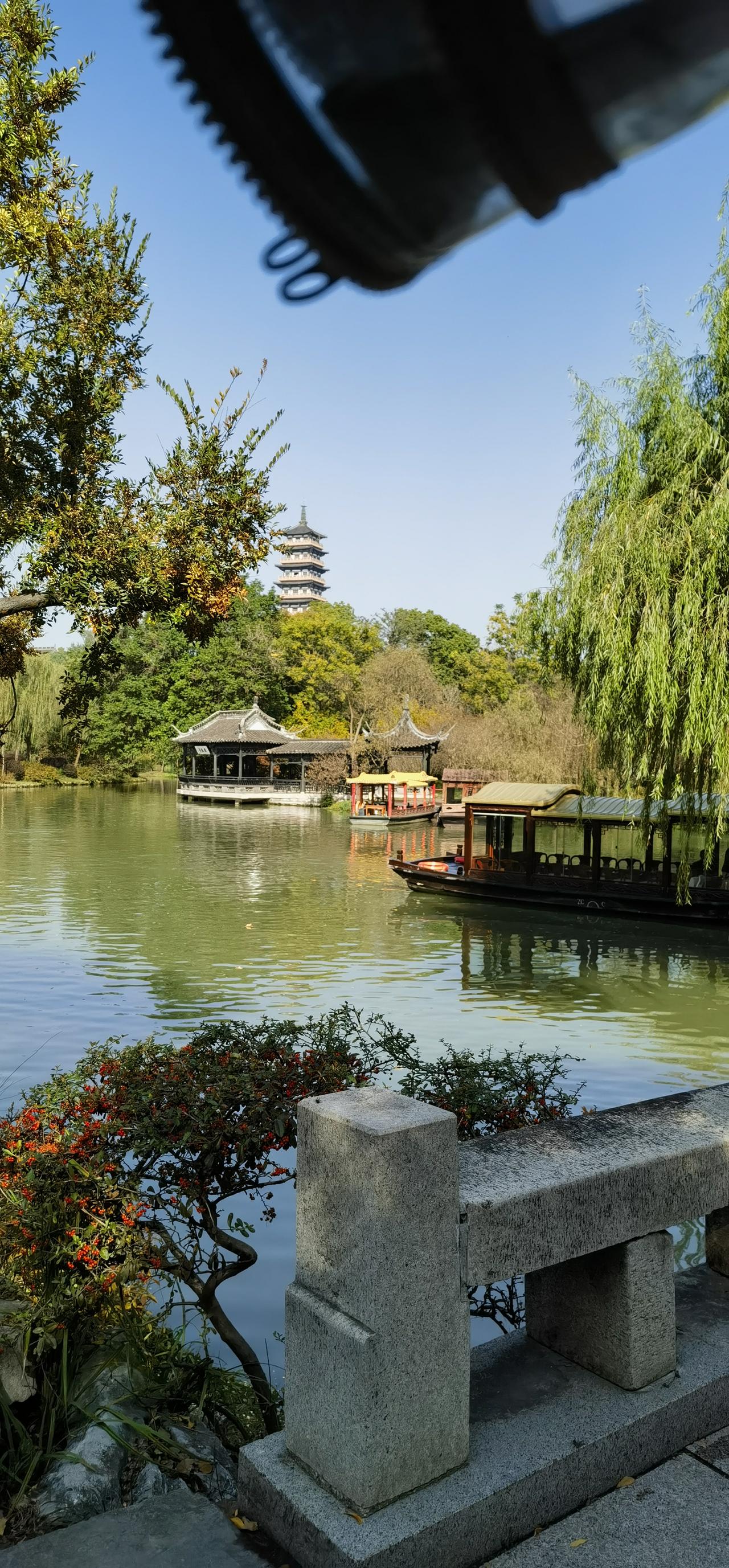 昨天从瘦西湖归来,秋日的扬州瘦西湖,真是一幅天然的绝美画卷。我来出个上联:“秋拂瘦湖烟柳醉”。 秋天的微风轻轻拂过瘦西湖,如烟的柳树仿佛都沉醉其中。就像孙强诗里写的“柳摇影动拂颊面”,秋天的柳与春日不同,多了几分沉静与诗意。“秋”点明季节,“瘦湖”是主角,“烟柳醉”把柳树拟人化,营造出一种如诗如画的意境,感觉下联都迫不及待要出现来与之呼应啦。 大师请: 上联:秋拂瘦湖烟柳醉, 下联:???
