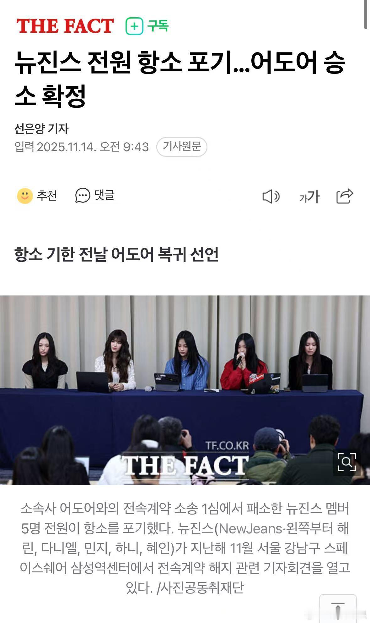 NewJeans全员放弃上诉,ADOR胜诉,