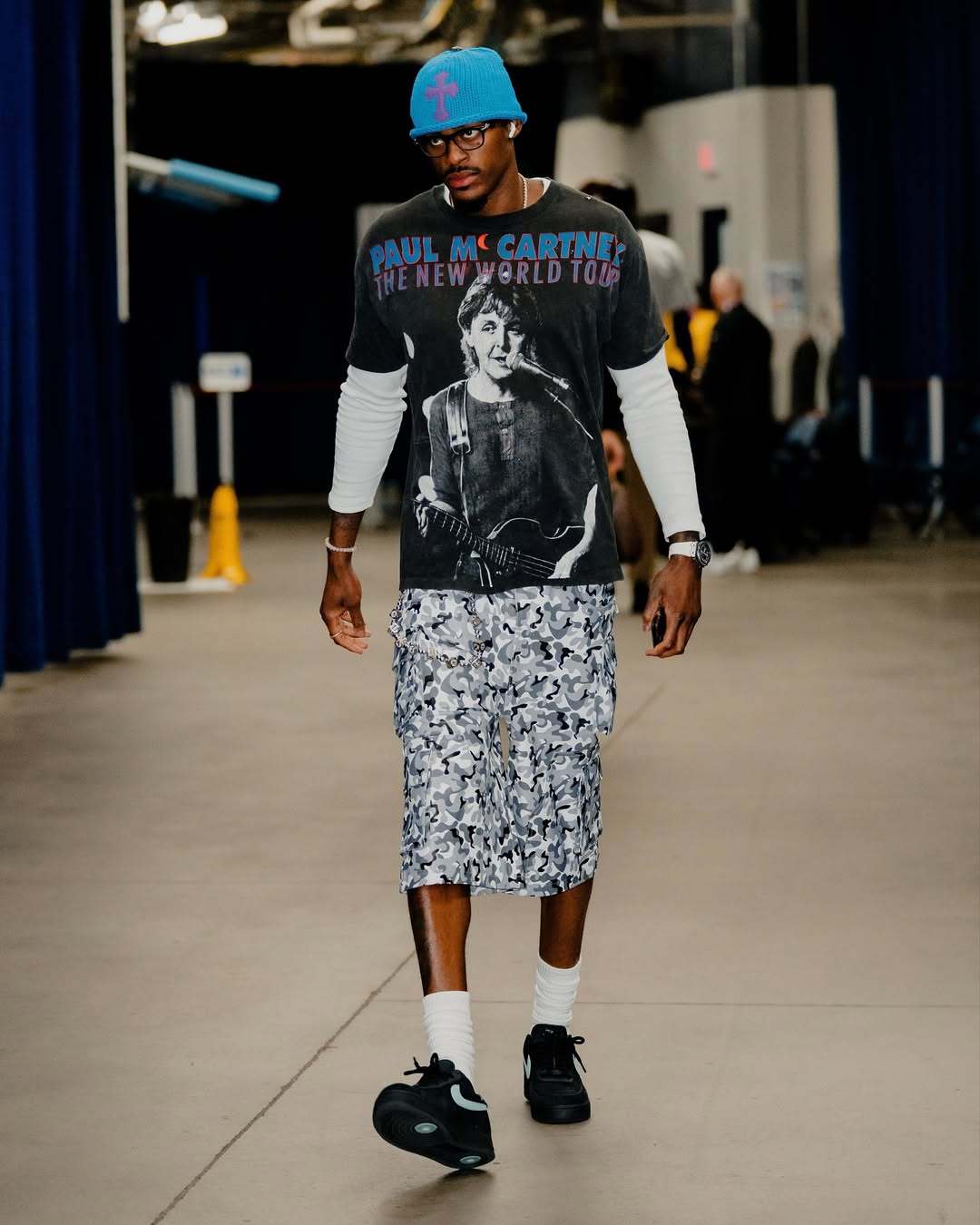 浓眉老师,现在已经胖到有一个半座位宽了……PS:你说你坐独行侠场边,穿了这么个队