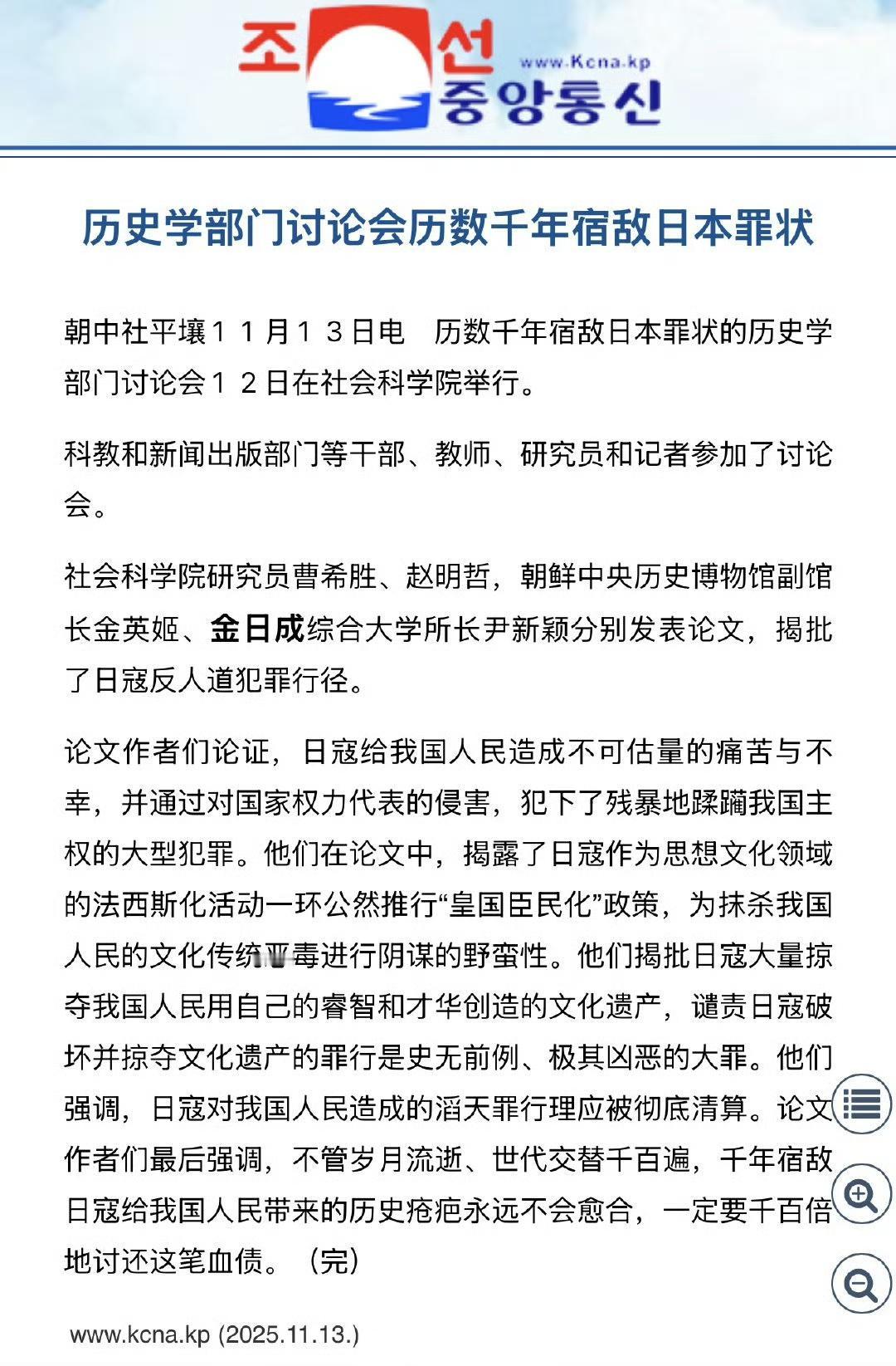 朝中社昨天的新闻稿:“历数千年宿敌日本罪状”