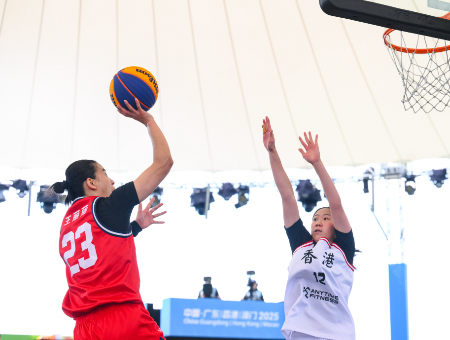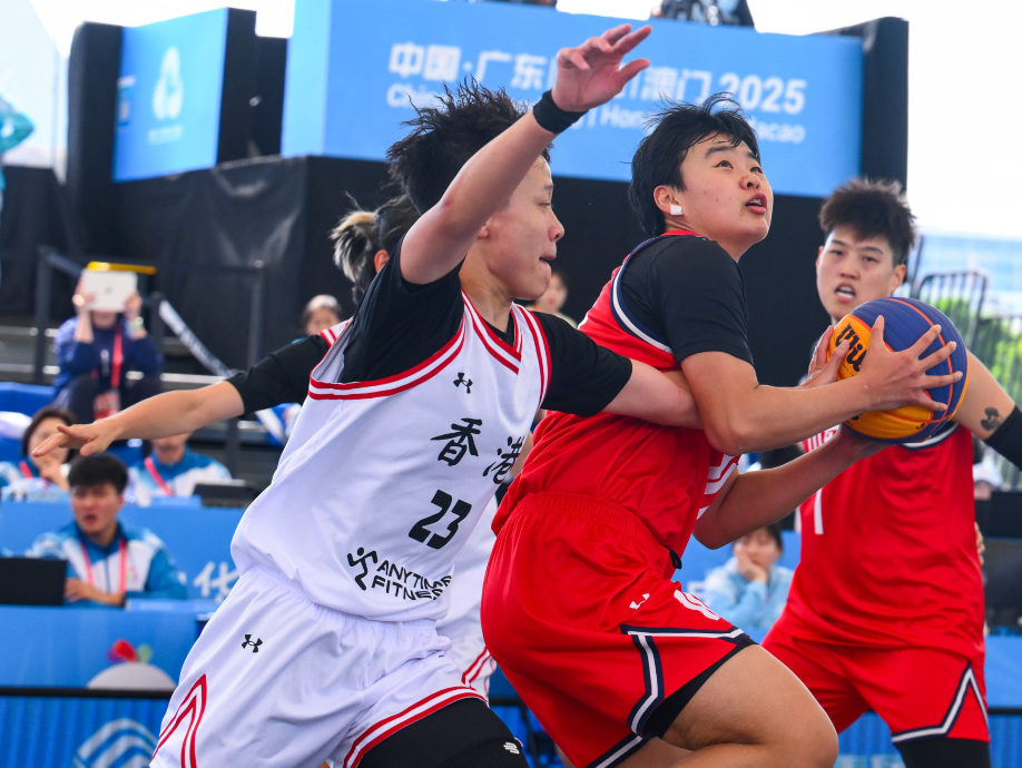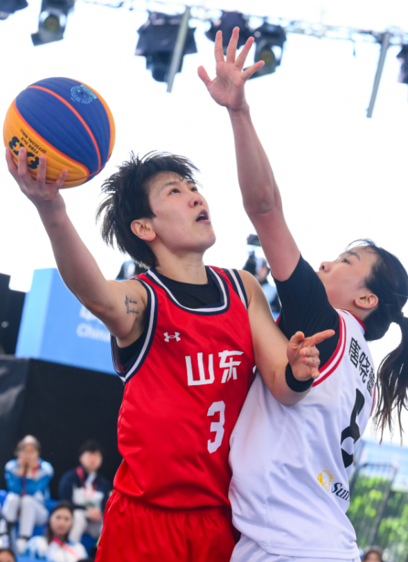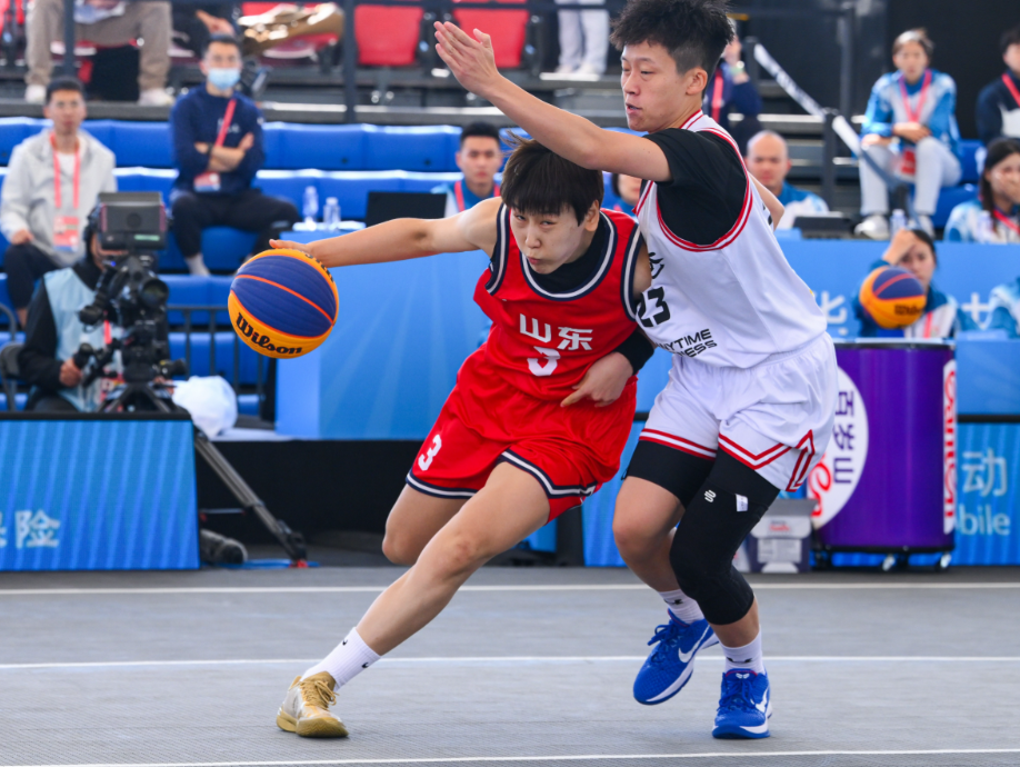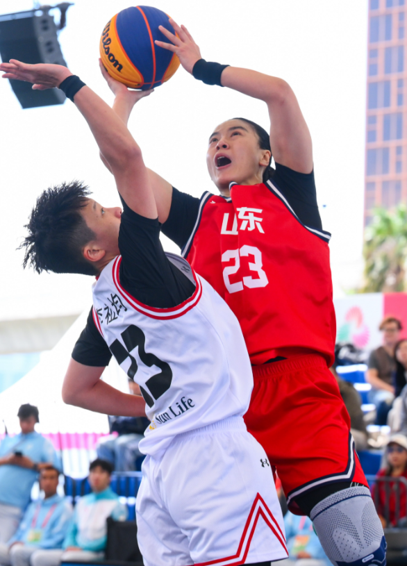 在澳门举行的第十五届全国运动会三人篮球女子小组赛中,山东队21比11战胜香港队。