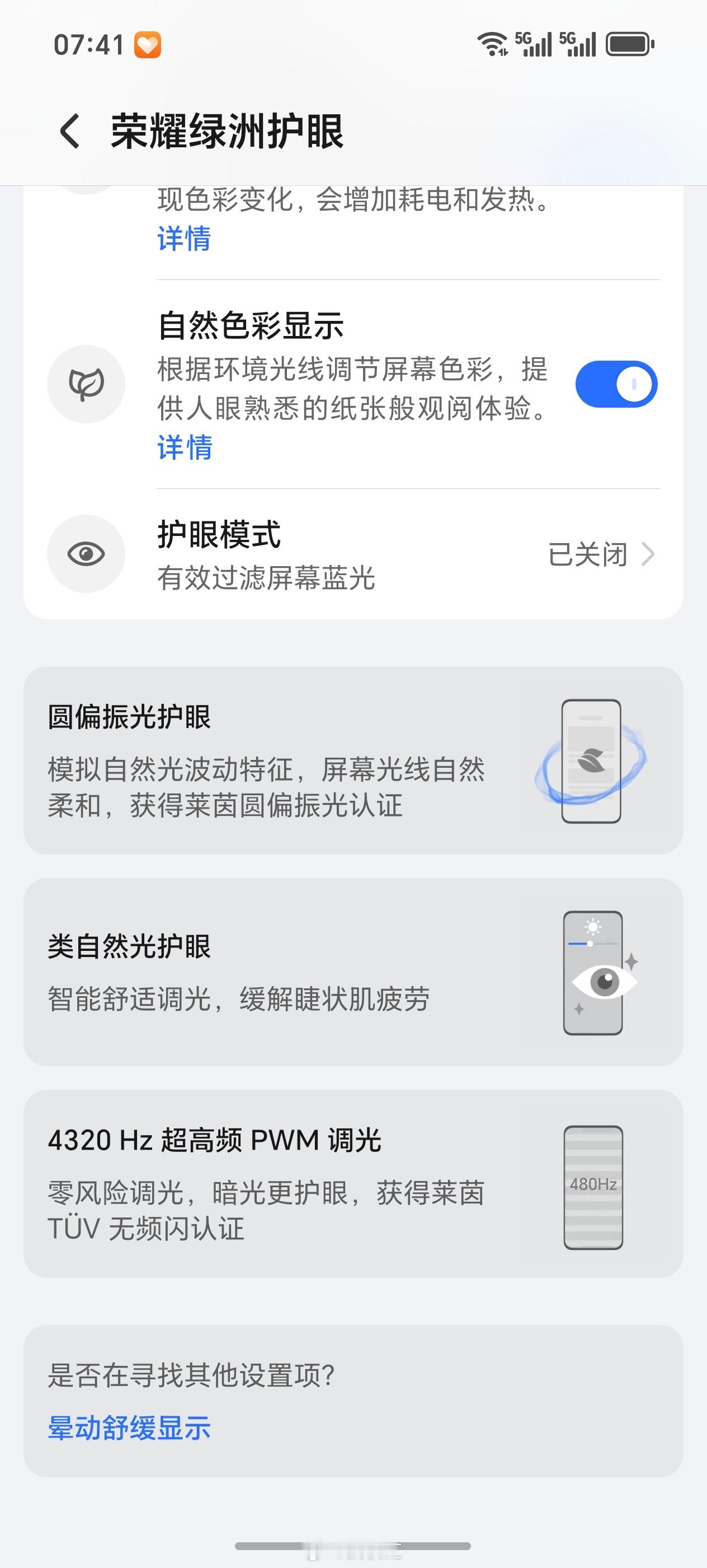 现在我们业余时间,基本都是长时间盯着手机看的,所以手机厂商对护眼这方面也越来越重视。比如荣耀绿洲护眼,就实现了全方位守护双目,缓解视疲劳。真正把屏幕护眼做到了从被动防护到主动缓解的跨越。即使久刷手机眼睛也不干涩,太懂重度用户需求了。