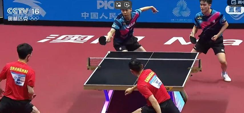 第十五届全国运动会乒乓球团体赛第一盘,许昕/周恺3比1(11-6、11-9、8-11、11-8)曹彦涛/陈亚轩。目前上海地产1比0江苏挺拔。第二盘樊振东对阵孙闻。
