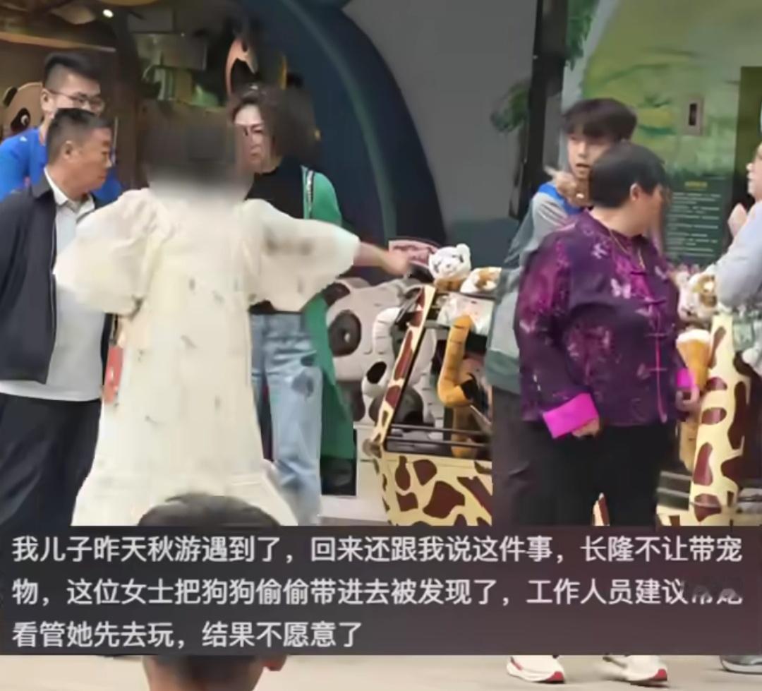 广东一孕妇带狗进动物园,动物园帮忙照看狗孕妇不同意,发疯打砸玩偶店。刚好园内有很多学生秋游,看到了这一幕,其中一秋游的学生家长称,长隆禁止带宠物入园,该孕妇偷偷的带了进去,被工作人员发现建议她把狗留下由园方照看,自己进去玩,孕妇不同意,然后就在众目睽睽之下耍起了泼,把旁边玩偶店的玩偶一件一件的扔飞出去,工作人员上去劝阻,她更加发疯,将礼品架一排一排的推倒在地,一边骂一边扔,嚣张至极,工作人员看她是孕妇,也不敢碰她,只能她扔什么,就捡回什么。
