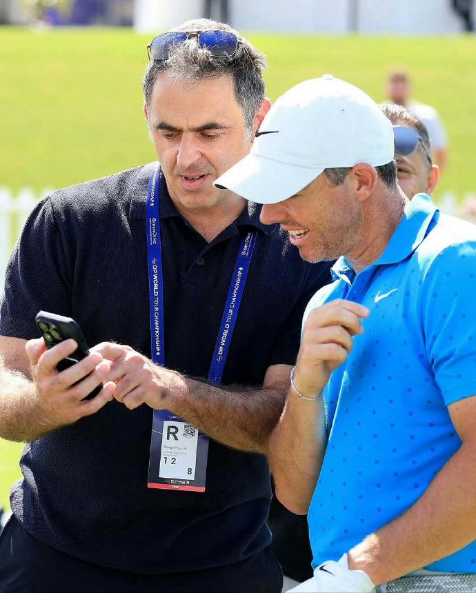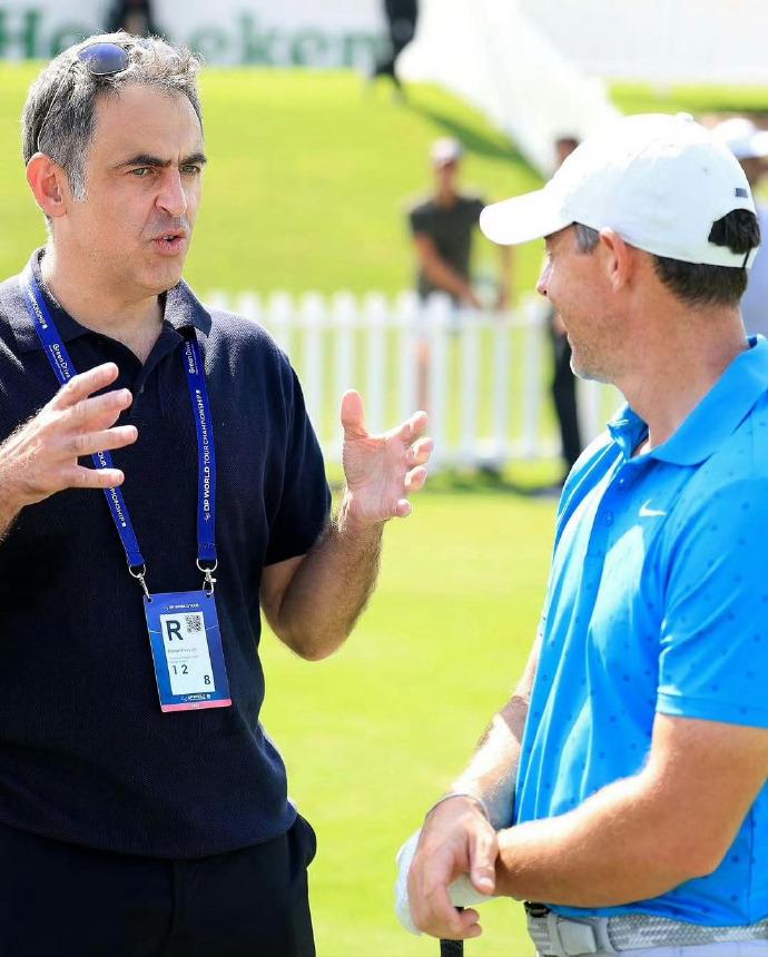 斯诺克:奥沙利文受高尔夫DP巡回赛邀请,与传奇选手罗里·麦克罗伊交流互动。