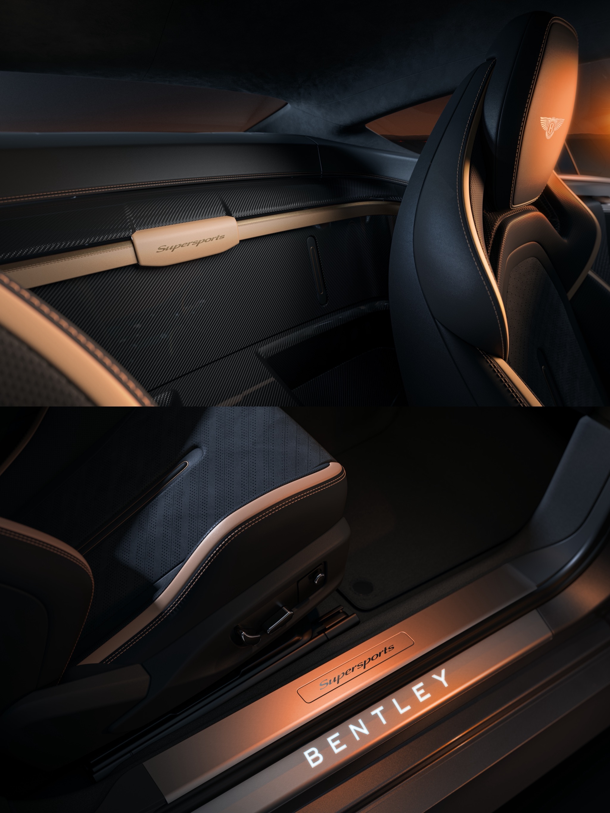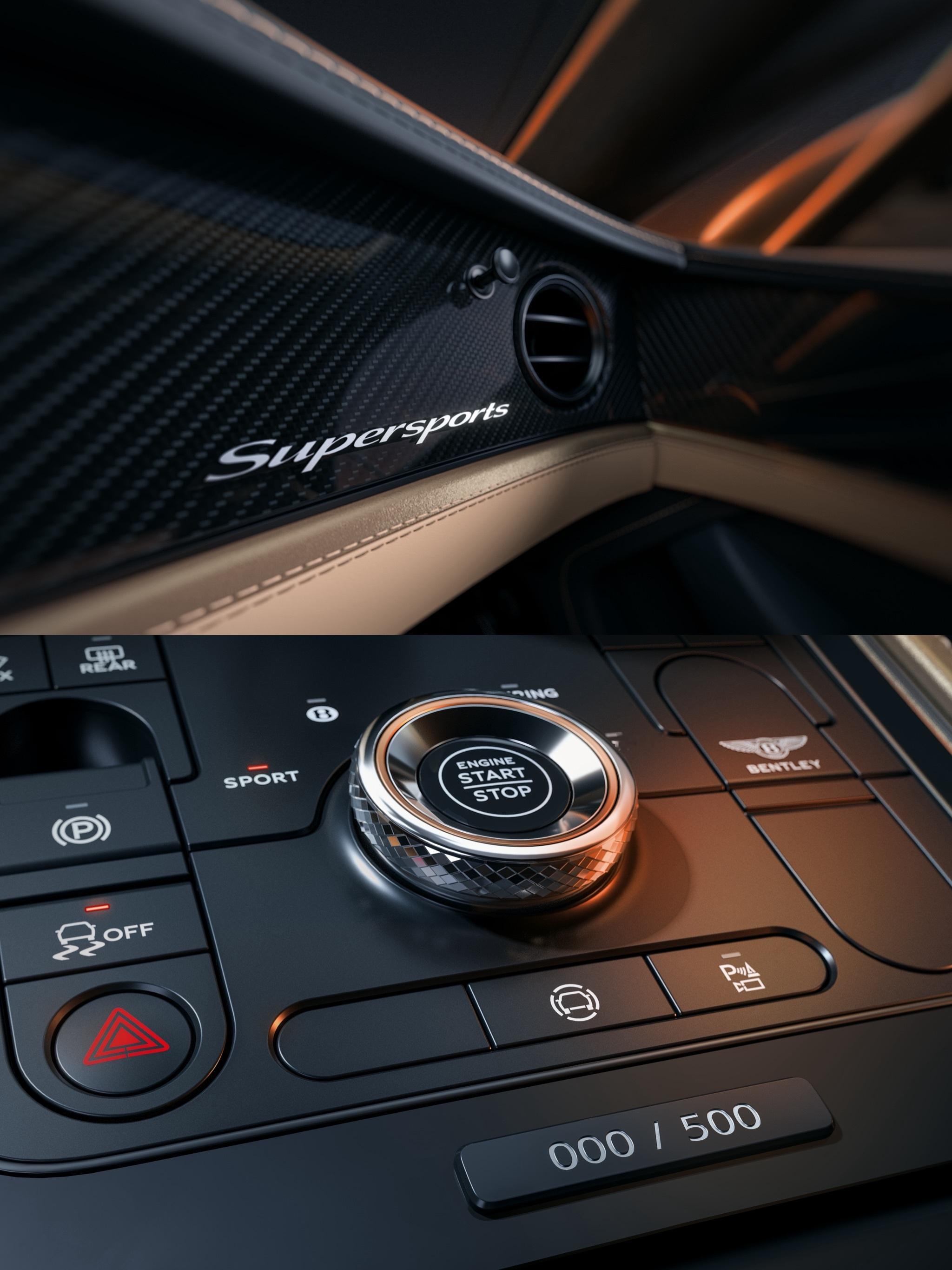 宾利的第四款Supersport首先,这是一辆大幅减重的Continental GT,它取消了引擎中的混动系统、四驱系统、后排座椅、隔音材料、部分的驾驶辅助系统,使用碳纤维材质的车顶、轻量化的座椅……在这么多努力的加持之下,它总重量是——“不到2吨”。不过这是宾利,这已经算是他们家绿色格子呢大衣和橡胶雨靴固搭中的运动健将了它的动力,来自于一部4.0升双涡轮V8,它拥有更强劲的曲轴和缸盖、更大号的涡轮,同时(就像刚讲过的)还取消了所有的混合动力系统。因此,这部引擎可以输出666 PS的马力、800 N·m的峰值扭矩,百公里加速约3.7秒、最高车速约310 km/h和引擎搭配的是一部全新标定过的、强化了离合器的ZF 8速自动变速箱,换挡更直接,把这台纯汽油引擎的动力全部送向后轮;作为一辆纯后驱车型,这么大且直接的马力需要做特殊的处理才能得到控制。因此宾利把新Supersport的后轮距加宽了16毫米,同时在扭矩矢量控制和电子限滑差速器等软件上也做了特殊标定,让车子在转向和制动时可以保持更高的可控性;底盘方面,Supersport保持了前双叉臂后多连杆的设计,空气悬挂用了全新的双腔的减振器。前轮使用了10活塞的刹车卡钳和440毫米的刹车盘。标配倍耐力P Zero轮胎,还可选Trofeo RS胎;还有就是一些表面上的东西了,比如宾利声称很重要的空气动力外观套件、一套钛合金的排气系统、内饰上的碳纤维和独特刺绣与徽章……全新Supersport将于26年3月开始接受订单,26年四季度开始生产,限量500台,客户可以自选想要的限量编号。这辆车的销售地区包括:英国、欧洲、美国、加拿大、澳大利亚、新西兰、马来西亚、阿曼、巴林、阿联酋、卡塔尔、科威特。你懂我意思吧