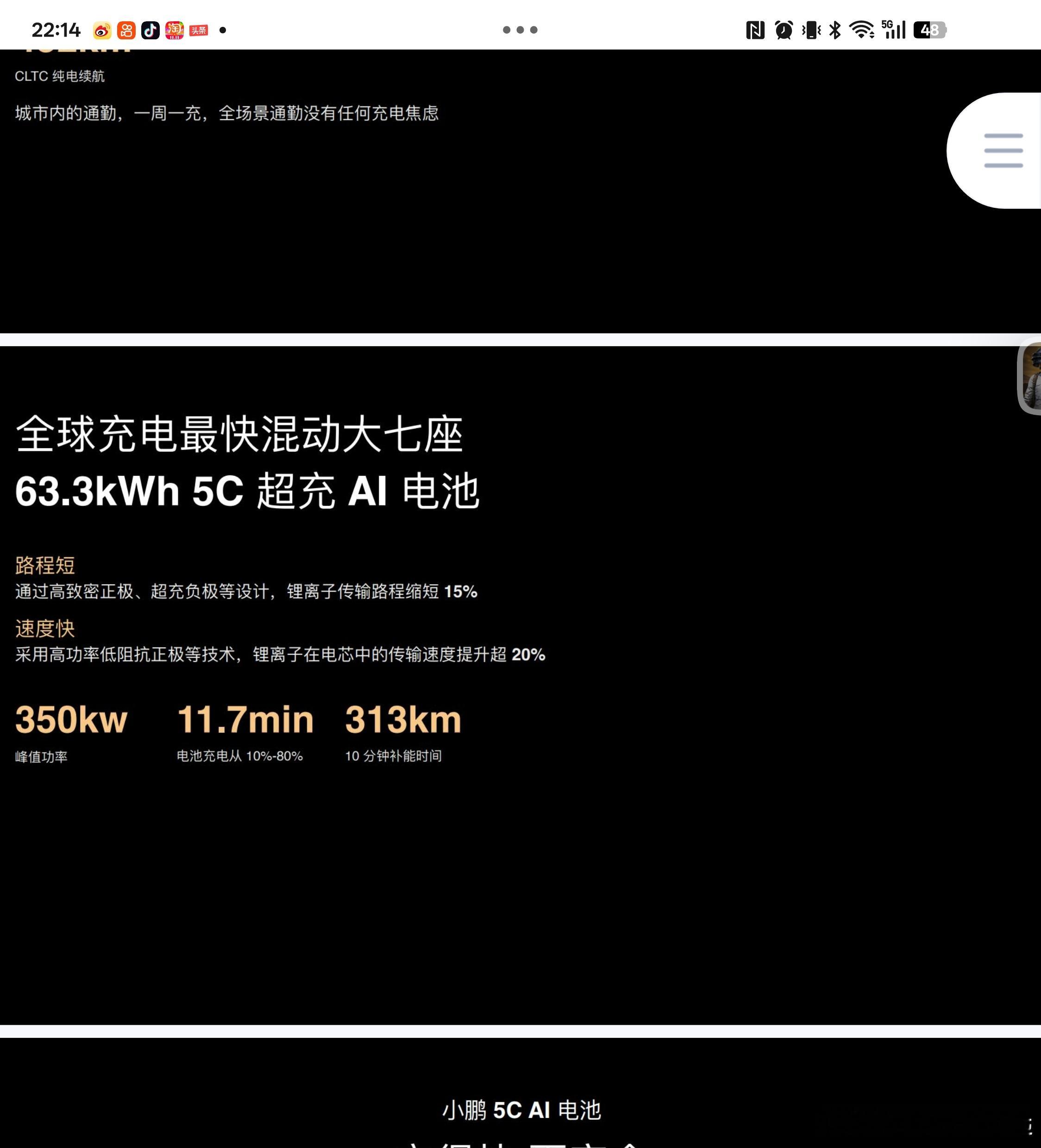我觉得大电池增程才是MPV的最终形态!之前总有人问我小鹏X9啥时候出混动,因为这车是为数不多外观不油腻且内饰足够豪华还带后轮转向和高阶辅助驾驶的MPV了,唯一的顾虑就是纯电的动力对MPV来说会有续航焦虑。这回大家期盼的小鹏X9超级增程终于来了!而且一上来就搞了大电池增程,63.6度的电池比Model3标准版还大,纯电续航452km什么概念?一天上下班30公里,能满足半个月一充电,而且800V快充也没有缺席,这回在城里完全可以当成纯电车代步了,跑长途的时候满油满电能跑1602km,这是目前全球综合续航最大的7座MPV了!我觉得这才是新能源时代MPV的最终形态。而且小鹏没因为装大电池和大油箱而取消小鹏X9标志性的后轮转向和电动折叠第三排,这次的辅助驾驶能力也靠2250TOPS算力的图灵芯片得到了质的提升,还在犹豫小鹏X9的朋友这回可以直接冲了!