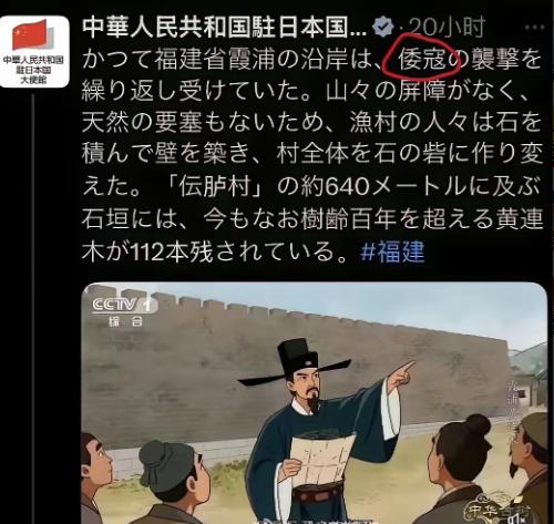 我驻日大使馆明确使用“倭寇”一词,是第一次,也属罕见! 就在昨天,中国驻日本大使馆官方X账号发了一条日文推文,看上去没点名谁,但懂历史的人都明白分量。推文提到福建霞浦沿海在明代屡次遭到“倭寇”袭扰,军民一起筑墙防守。短短几句,把几百年前在中国沿海抢掠的日本海盗和如今一些人对台湾问题的挑衅关联了起来。 选择此时说“倭寇”,并非偶然。就在前几天,日本首相高市早苗在APEC会议期间悄悄和台湾地区人员会面,还在公开场合称对方是“总统府资政”。 她在日本国会更放话说,如果台海发生冲突,日本可能会视为“存亡危机事态”,言外之意就是准备介入军事行动,这些言论直接踩在中国的政治底线上。 中方当天就向日方提出了严正交涉,明确指出这是严重违反一个中国原则、粗暴干涉中国内政,中国发言人随后警告,那种鼓吹“台湾有事就是日本有事”的说法,是把日本推向不能回头的危险道路,也是对二战后国际秩序的挑衅。 在警告之外,这次大使馆直接用“倭寇”回应,把历史的刺刀亮在台面上,对中国来说,“倭寇”不仅是沿海百姓的苦难史,也是民族抵抗的记忆;对于日本,这个词是历史耻辱,不管怎么淡化或美化都改变不了事实。 这样的外交用语是在提醒日本,不要忘了当年曾犯下的行为,更不要在今天重蹈覆辙。 其实,今年以来,中国驻日外交动作明显更硬,九月,大使馆发布“731”主题海报,提醒世界日本军国主义的反人类罪行。 随后,还罕见地公布东风-5C战略导弹图片,释放出明确的威慑信息。十一月,中国驻大阪总领事薛剑针对日本政客的涉台错误言论,也公开表达了强硬立场,这些都是在亮明态度,不再含糊其辞。 这背后,是日本近期在地缘政治上的一连串冒险行为。它在台湾和南海问题上不断试探中国红线,还在福岛核污染水排海问题上无视科学和国际反对,把危害强加给全世界,这些行为让中国的战略耐心被一点点耗尽。 如今,面对挑衅,中方用历史的方式回应,并不只是回顾过去,而是告诫某些人:历史上侵略的路只会通向失败,现实中一旦越界,也会付出无法承受的代价。 中国在外交上从过去的留有余地,转向直面核心矛盾,已经表明不会对任何触及根本利益的举动退让半步,这是明确信号,也是一道底线。 在这种格局下,中日关系未来会怎样,关键取决于日本是否收回试探底线的手。如果继续在错误的方向上走,中国的回应只会越来越直接、越来越不留情。东亚的稳定,不会因为某些政客的自我冒险而被绑架。