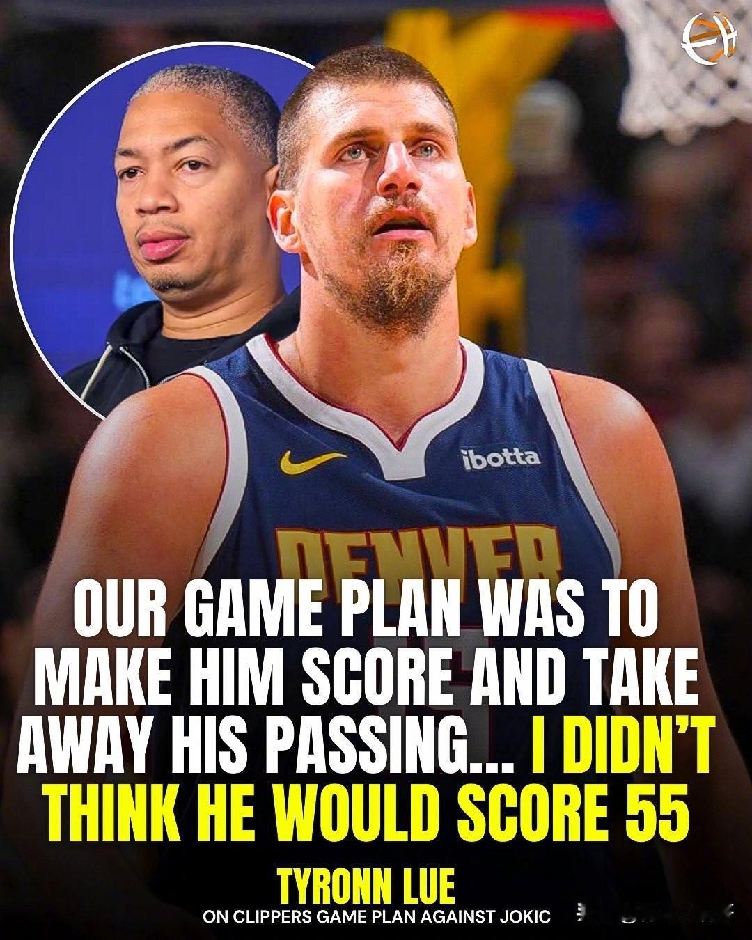泰伦卢没想到约基奇能拿55分!!!限制住助攻,没想到的得分更吓人! 约基奇成为了11月13日的今日最佳球员,一个人狂飙55分,还带队拿下胜利,这最佳必须奖励给他,全能约基奇不是吹的。 赛前,卢指导已经提前为这场比赛做好了准备,毕竟主场作战,他们也希望给主场球迷留个好印象,所以卢指导布置战术就是限制约基奇的助攻,阻止他盘活全队。 都知道约基奇是三双王,泰伦卢也不傻,这个策略或许也没错,但是他没想到约基奇能这么准,而且是内线外线都很准……他成功限制住约基奇的助攻,只有6个,但是没限制住得分! 泰伦卢:我也没想到他竟然能拿55分。 球迷:你没想到的多了,你想到你快下课了吗? 约基奇 泰伦卢 快船