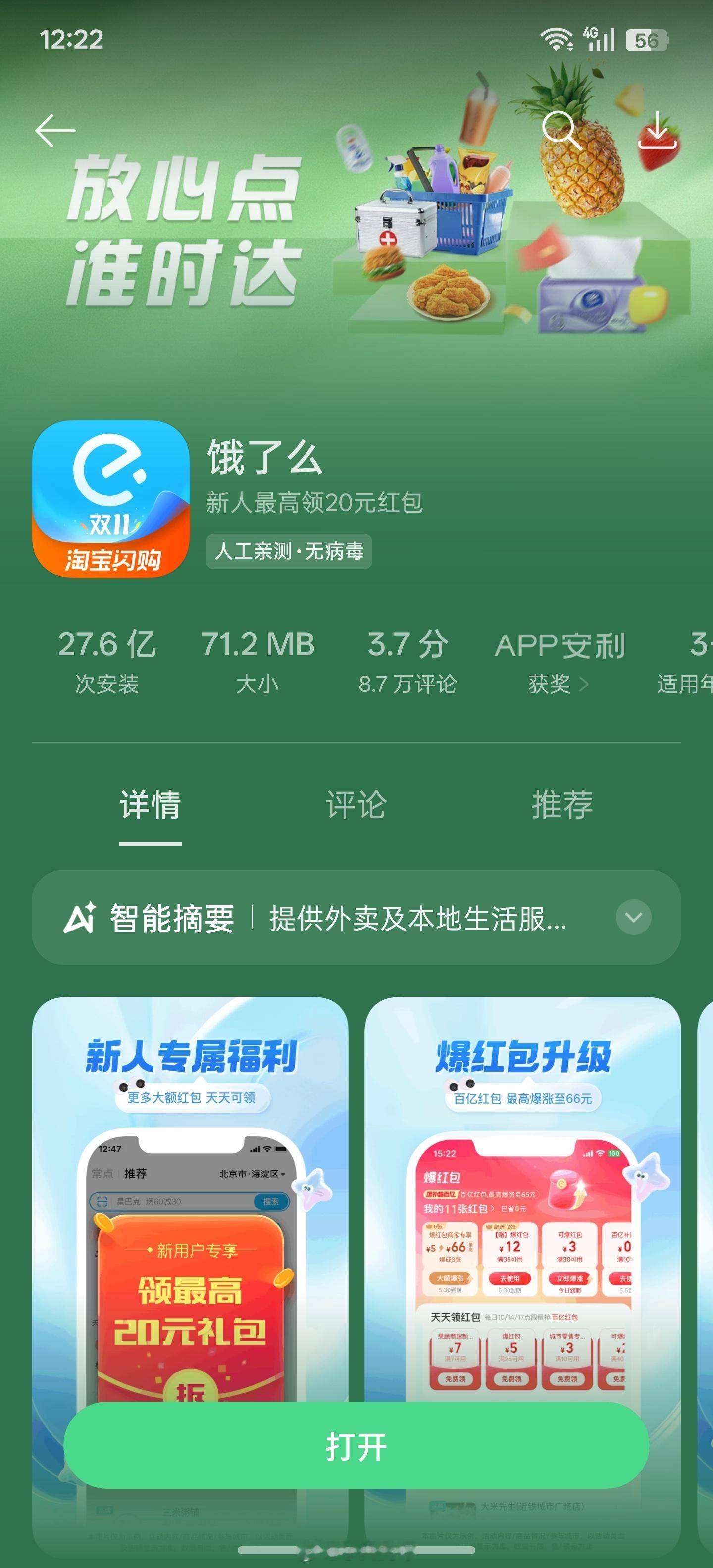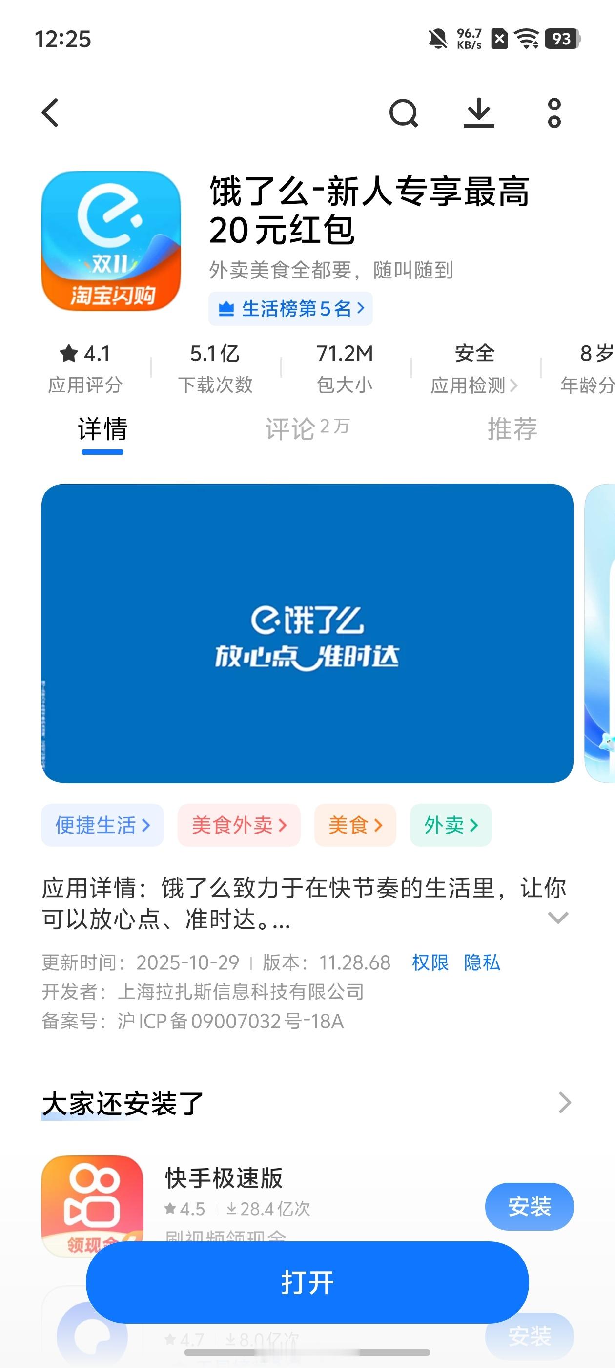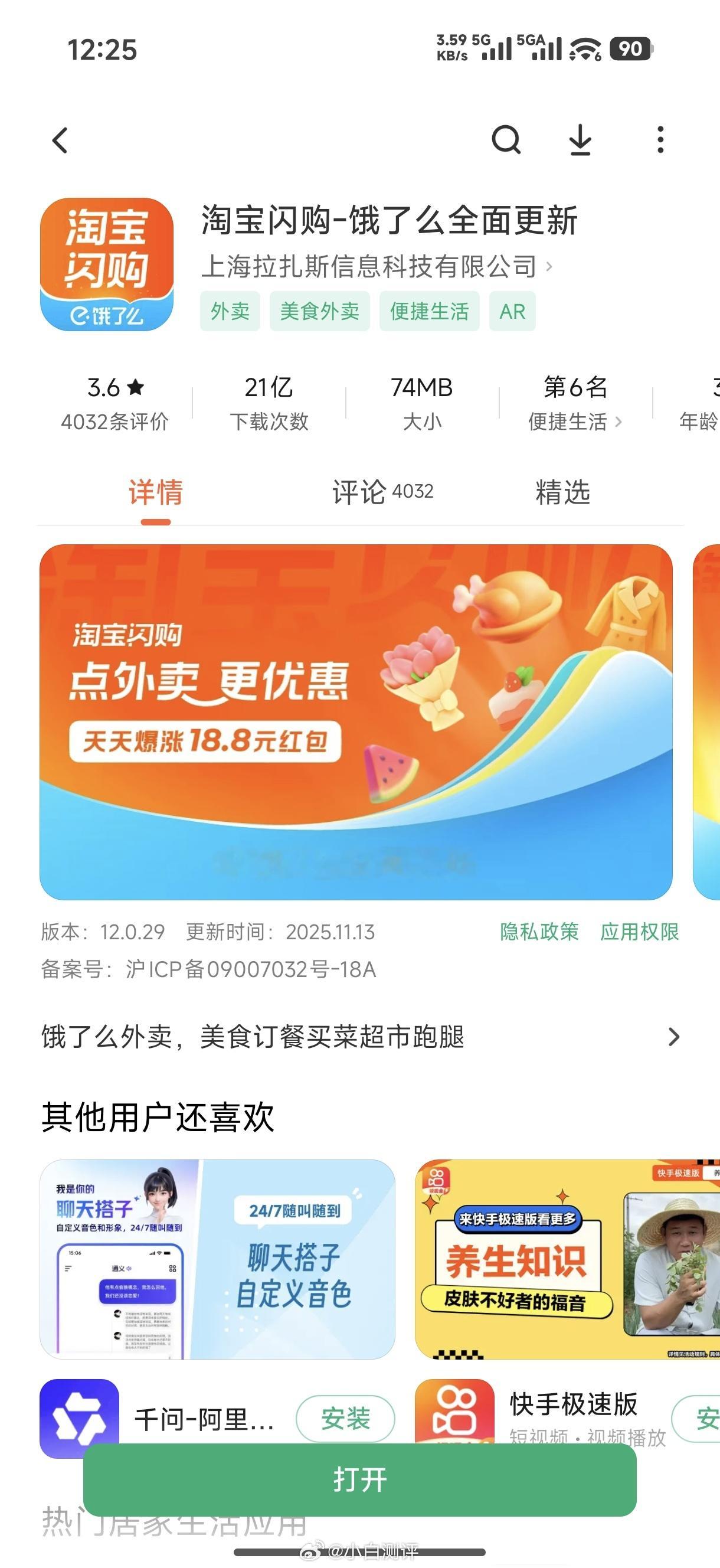 刚看小米应用商店(图1)饿了么App已经改名变成『淘宝闪购』了, 图2-图6是苹果、华为、荣耀、OPPO、vivo应用商店暂时还没变,大家手机里饿了么改名了吗