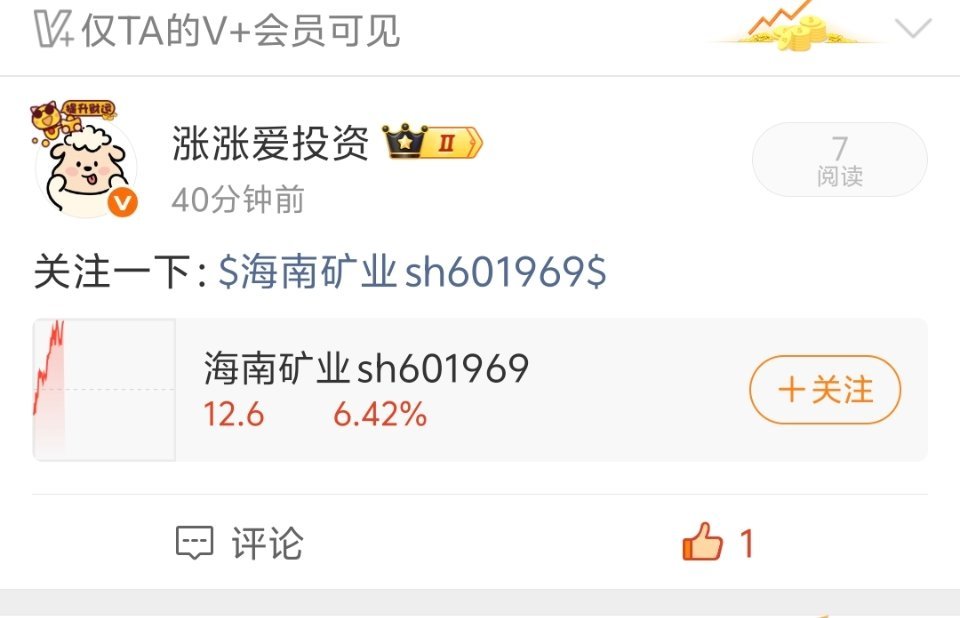 早盘v+分享的:$海南矿业sh601969$会不会涨停,拭目以待!!