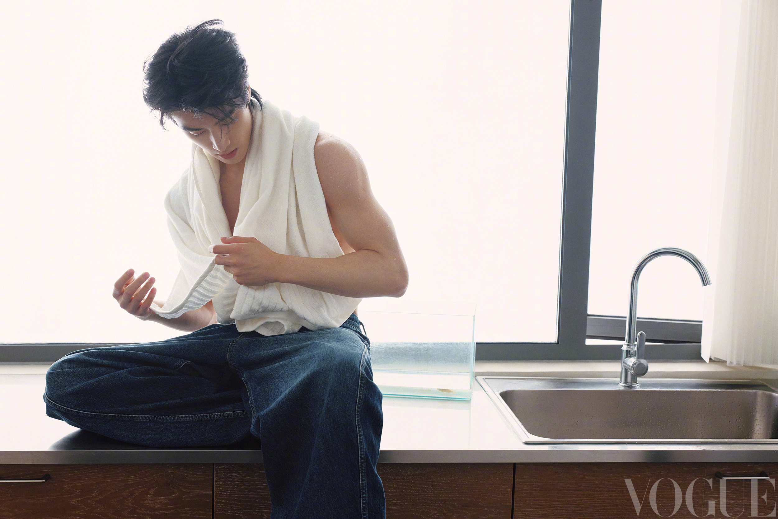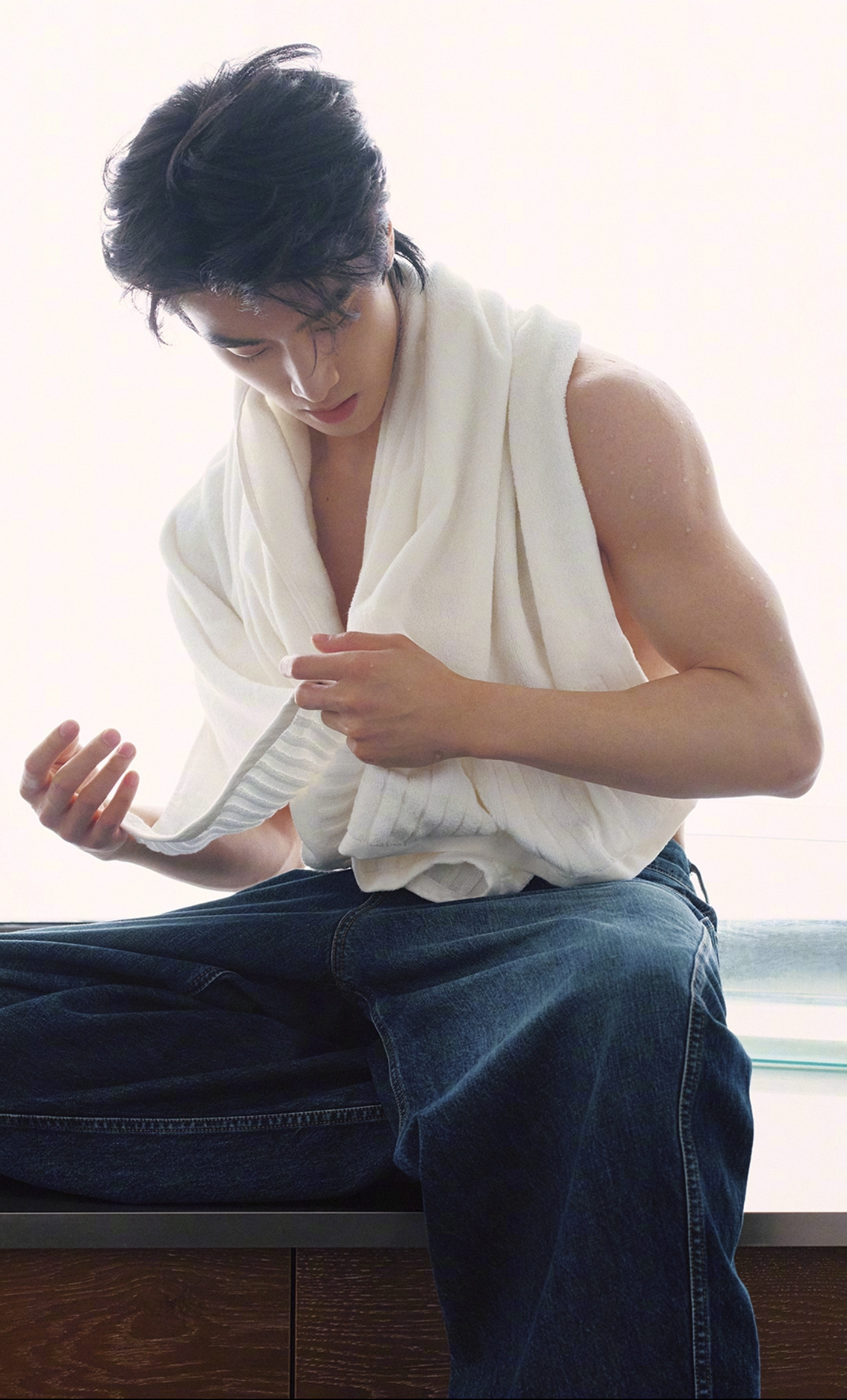 富有且慷慨的张康乐,搭条浴巾就拍大片儿了,手臂上还有水珠🥵