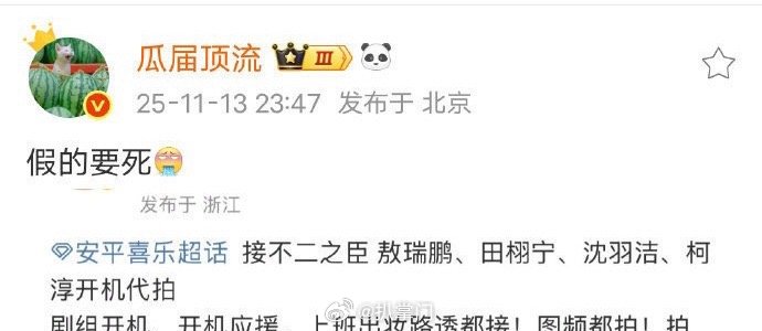 这是要空欢喜一场了啊,网传《不二之臣》阵容后,还以为敖瑞鹏和田栩宁这对老朋友,要在新剧有对手戏了,没想到瓜主出来否认了啊,就是说到底谁会演《不二之臣》呐~