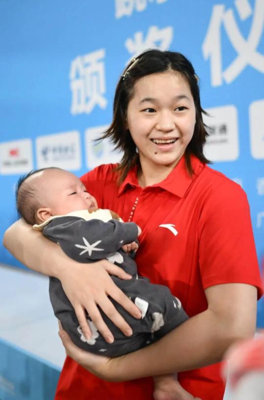抱着孩子领奖的全红婵,可能是全中国,甚至全世界最松弛的运动员了吧! 说真的,见过太多运动员领奖了,不是紧张得攥紧奖牌,就是板着脸保持严肃,哪有像全红婵这样的,胸前不挂金牌反倒挂个小娃娃,这松弛劲儿真是独一份,说她是全中国甚至全世界最松弛的运动员,一点不夸张。 这事儿发生在全运会颁奖现场,她刚帮广东队拿了冠军,师兄谢思埸要上台领奖,家里的小宝宝在现场被人多声大的场面闹得有点不安分,谢思埸正犯愁没法兼顾领奖和带娃,全红婵直接就凑过去说“师兄我来抱”,一点没犹豫。 你想想那场合多正式啊,颁奖仪式呢,镜头全对着呢,换别人就算想帮忙,也得顾及场合讲究规矩,可她倒好,顺手就把孩子接过来了。 轮到合影领奖的时候,她也没把孩子交给别人,就这么抱着走上领奖台,把自己的金牌往运动服口袋里一塞,光顾着低头哄怀里的小家伙。 颁奖嘉宾都愣了一下,可台下观众全沸腾了,没人觉得她不正规,反倒都掏出手机拍,这画面多鲜活啊。 你看她当时那状态,一点没因为抱着孩子就拘谨,孩子抓她的奖牌她也不拦着,还耐心递过去让小家伙摸,升国旗的时候孩子跟着晃脑袋,她还轻轻扶着孩子的背,那股子自然劲儿,哪像在参加啥隆重仪式,倒像在自家院子里带娃玩似的。 这松弛真不是装出来的,是刻在骨子里的,想当年她14岁第一次参加奥运会拿金牌,记者问她想干啥,她也不整那些虚的,直接说“想赢奖金给妈妈治病”,多实在。 现在长大了还是这性子,不端着不装腔,领奖台对别人来说是展示荣誉的地方,对她来说好像就是个普通的场合,该帮忙带娃就带娃,一点不把“冠军身份”当回事儿。 她抱着的那孩子12公斤重,差不多相当于她平时训练绑在腿上的沙袋重量,领奖台台阶又高,她跨上去的时候膝盖都明显抖了一下,可脸上一点没露难色,还照样逗孩子笑,这要是换个心思重的运动员,早担心自己形象不好或者抱不稳出糗了,可她根本没往这方面想。 而且这松弛劲儿也离不开她身边的氛围,广东队就像一家人,谢思埸以前总把她当亲妹妹照顾,比赛前分她香蕉缓解紧张,现在她帮师兄带娃,就是家人间的互相搭把手,不用讲究那么多虚礼。 你看现场没人觉得她“出格”,教练笑着看她,师兄师姐也习惯她这性子,连孩子妈妈都放心把娃交给她,这种被信任的环境,才让她能这么自在。 后来还有品牌方想找她代言同款腰凳,给七位数报价她都没接,因为队里有规定不能私接代言,她也压根没想着靠这事儿捞好处,就是单纯帮个忙,这份不图名不图利的心态,才是真松弛的根源。 对比那些一到正式场合就紧绷的运动员,全红婵这状态太难得,她不是不重视荣誉,跳水的时候眼神专注得能钉在跳台上,207C那种高难度动作练得精益求精,可到了领奖台这种该“端着”的时刻,她反倒能放下所有包袱,眼里只有怀里的孩子和身边的队友。 她甚至会在合影时举手示意“等一下”,先弯腰调整好娃的腰凳,一点不担心耽误流程,这份从容不是谁都有的。 现在好多运动员都被“冠军包袱”压着,说话做事小心翼翼怕出错,可全红婵不一样,她还是那个会因为没抓到娃娃懊恼,会把队医给的低血糖糖果攒起来喂娃,会在尿检前塞给孩子一颗糖再走的小姑娘。 领奖台上的金牌对她来说是荣誉,但不是束缚,她不会因为要维持“冠军形象”就丢掉自己的本性。 你看她下台的时候,孩子还往她怀里拱,她解下腰凳还不忘哄两句,这哪是个冠军啊,就是个暖心的邻家姑娘,这种在荣誉面前还能保持本真的松弛感,真的找不出第二个了。