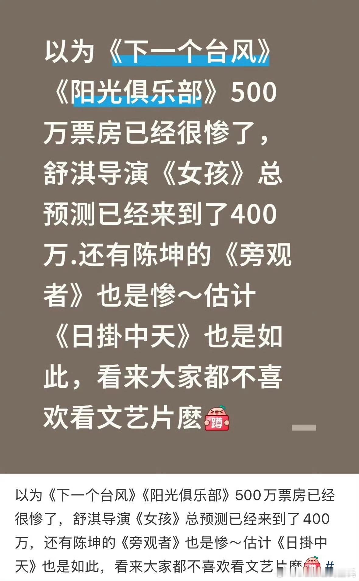 各位大婶,你们可以嘲流量演员演技和业务,粉丝声量大也没什么AC数,但甩锅流量扰乱影视业态就过分了啊……流量哪有什么好饼,先骂不扛招商不扛热度的资本和资源咖天龙人行不行?你们要不要看看你们电影圈本来就乱,有啥好扰乱的,尤其是HK的当年乱成啥样了?恐吓、黄片、洗money,GJ。而且要不要看看现在电影票房电视收视/播放量惨成啥样了,流量演员票房预售还有粉丝买单,其他的国民演员和戏骨们可能扑到姥姥家了,这都是投资人、导演编剧忽悠观众,乱买排片导致的———————————起因三个影后一张饭桌上吐槽流量演员扰乱影视业态,何赛飞:我觉得身心受到伤害,怎么影视业态变成这样了?刘嘉玲:怪不得我们的戏现在越来越难看了……宁静:票房毒药什么也是这样,因为他没有能力hold住这个戏他又要争。果然姐姐们开麦就是直接啊~