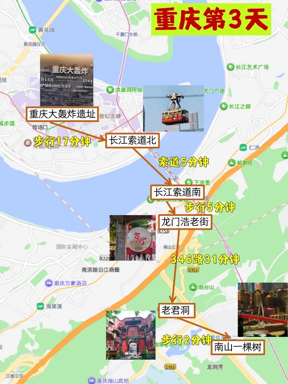 第3️⃣天:重庆大轰炸遗址博物馆——长江索道北——长江索道南——龙门浩老街——老君洞——南山一棵树