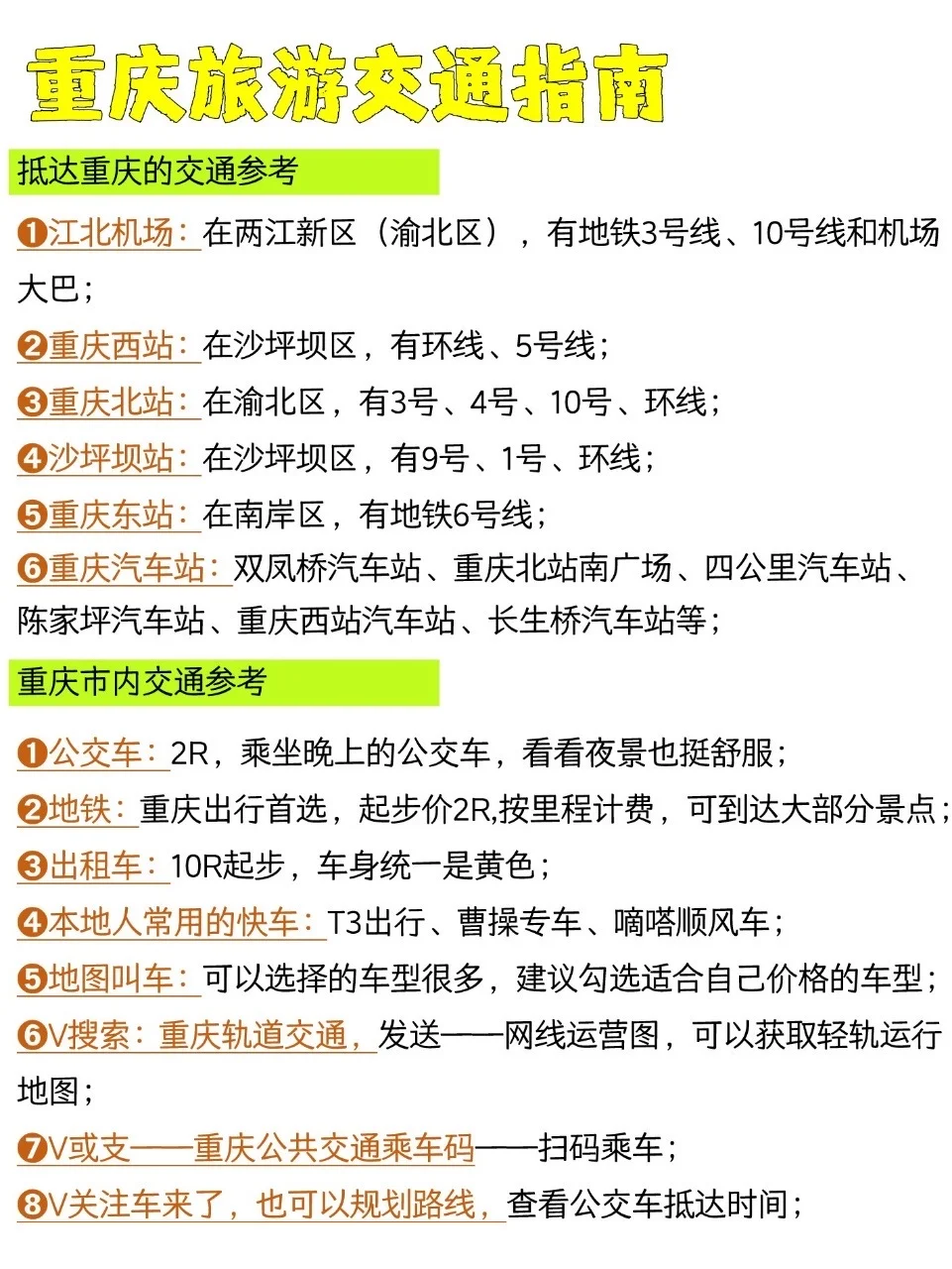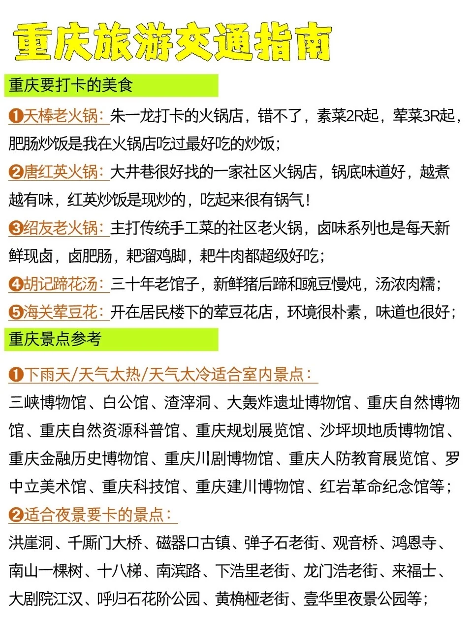 ✅来重庆旅游真的不用看太多的攻略,越看越不想看,这篇土著做的旅游攻略,涵盖了重庆的大部分景点、游玩线路、交通指南、美食安利等,希望可以帮助到大家;