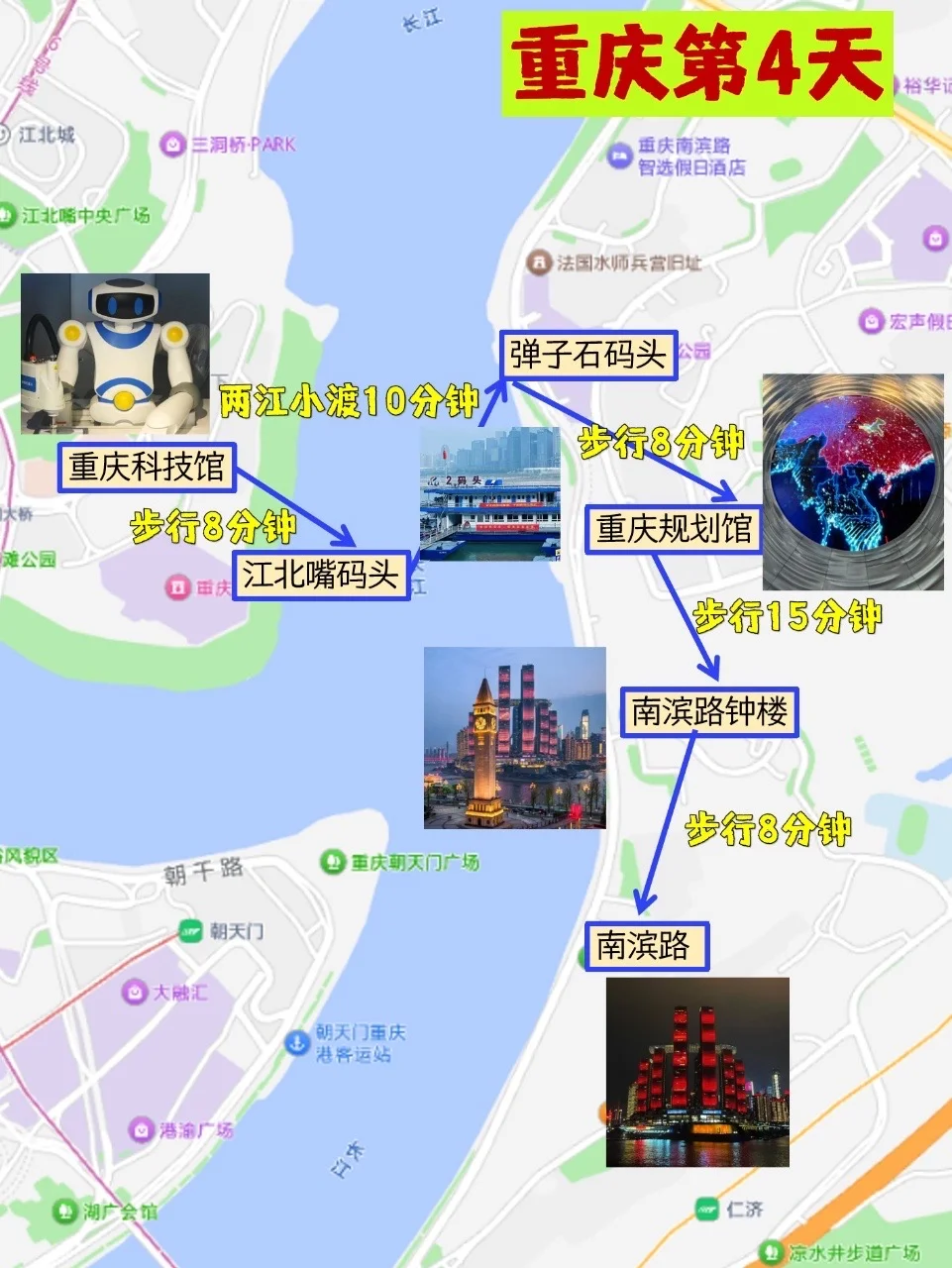 第4️⃣天:重庆科技馆——江北嘴码头——弹子石码头——重庆规划展览馆——南滨路钟楼——南滨路