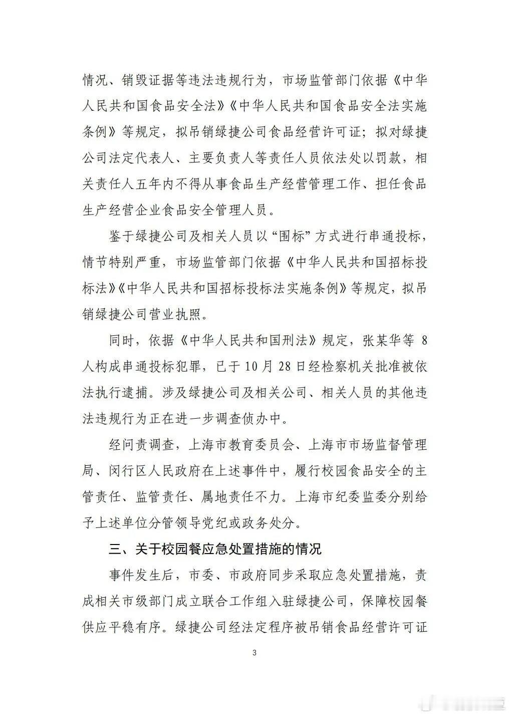 上海通报“学校午餐发臭事件”:已查明违法犯罪事实 8名责任人被逮捕,这个事情到现在才有结果,孩子们吃了这么久的恶心食物,这些人的刑事责任只有一个串通投标犯罪