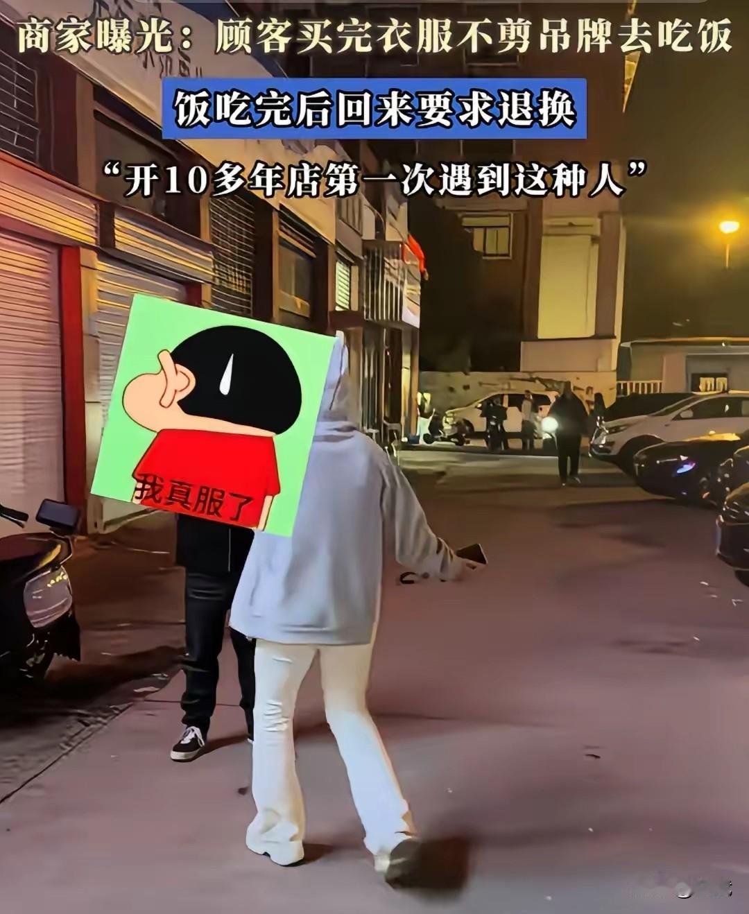 一女子买衣服不剪吊牌,穿两小时吃火锅后,竟回店强求退换。衣物污损、火锅味浓,二次销售成难题,商家权益岂容践踏?店主怒拒,合情合理。 可更过分的是,女子竟自行拿视频里的外衣穿上就走,毫无廉耻。店主追出,女子遮脸,仿佛这帽子能遮住她的贪婪与无赖。不过,这帽子遮得了脸,遮不住她“活不起”的丑态,遮不住她诚信碎地的真相。 做人要厚道,她却偏要贪得无厌。这般行径,丢人现眼,让诚信二字蒙羞,让社会规则受损。