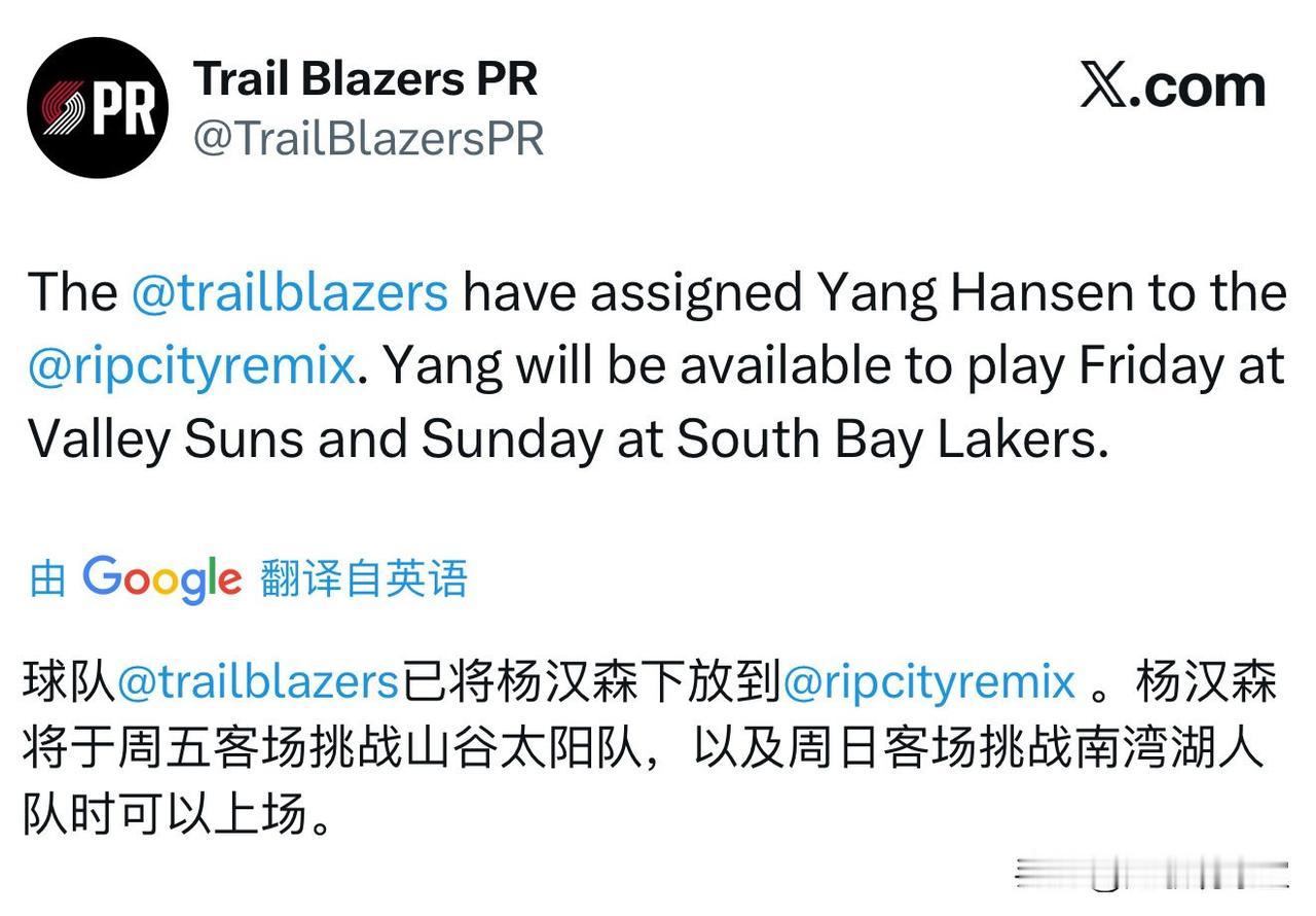毫无意外!杨瀚森被开拓者下放到发展联盟混音队,将于明天对山谷太阳和下周一对阵南湾湖人。在我看来,这不是坏事,开拓者现在中锋有克林根、里斯,加上伤愈复出的罗威得到主帅重用,杨瀚森在NBA出场的机会有限,与其坐穿板凳,不如去发展联盟锻炼锻炼,可以借助此次下放发展联盟的契机提升自我。想当年,周琦也曾被火箭下放到发展联盟毒蛇队,打了24场比赛,场均25.5的出场时间,拿到11分6.3板,杨瀚森想回到NBA,必须要超越周琦,达到易建联的水平,易建联当初也是被达拉斯小牛下放到发展联盟德州传奇,场均可贡献23分12板2.5助攻和2次封盖,因为表现出色,仅打了两场发展联盟的比赛,易建联就被小牛召回来了,因此,杨瀚森必须要抓住发展联盟的机会,打出成绩来,争取重返开拓者!