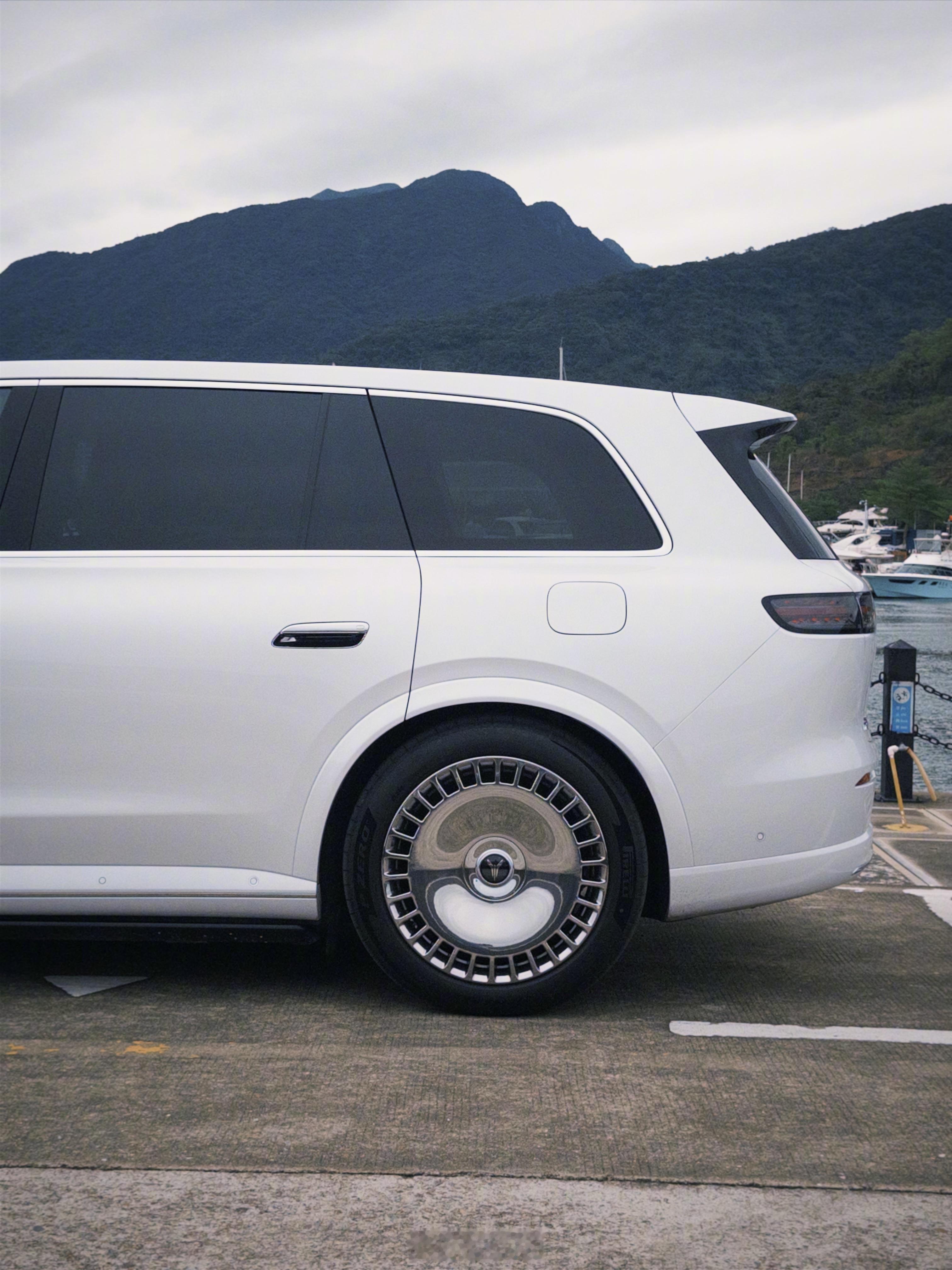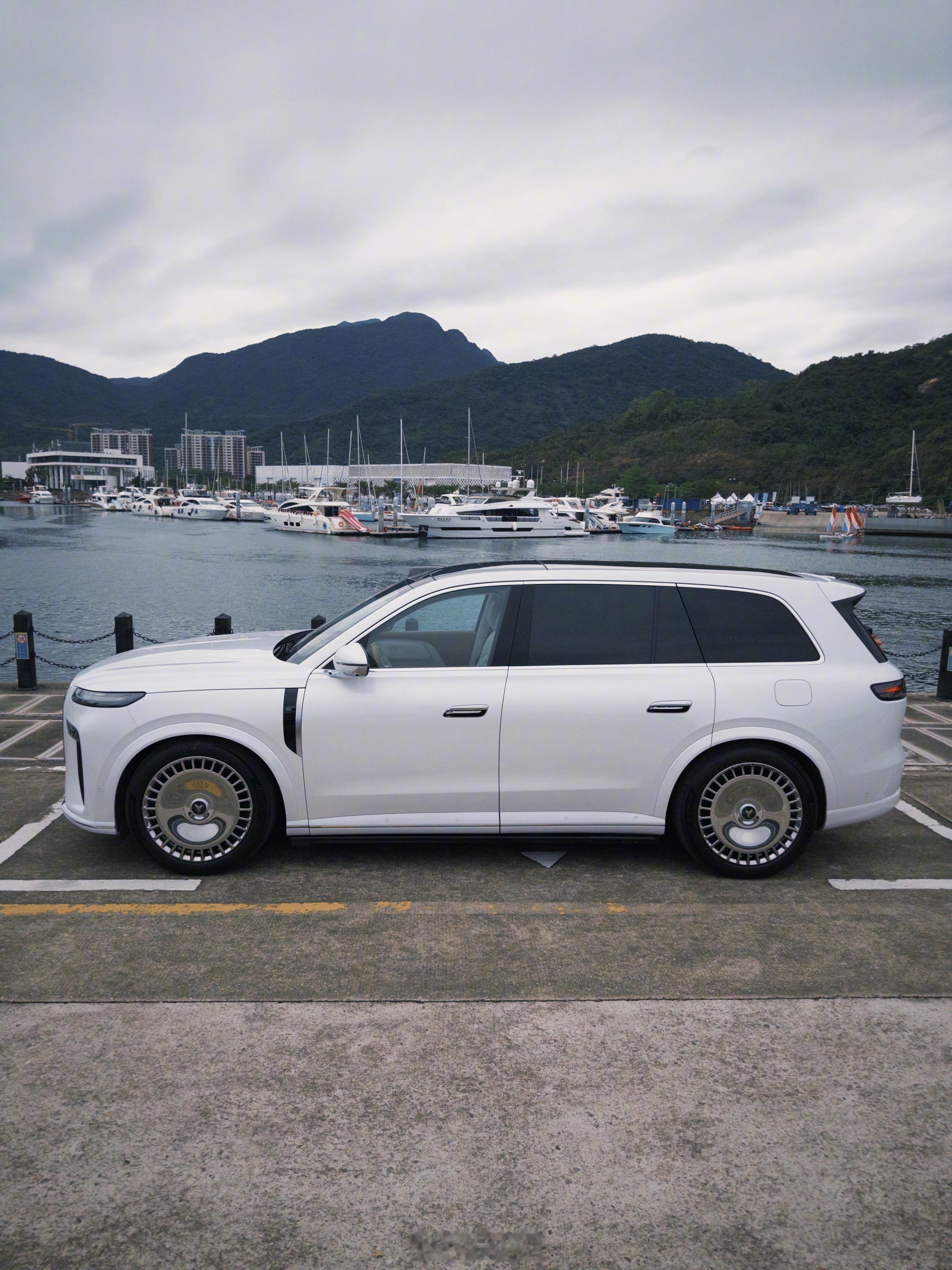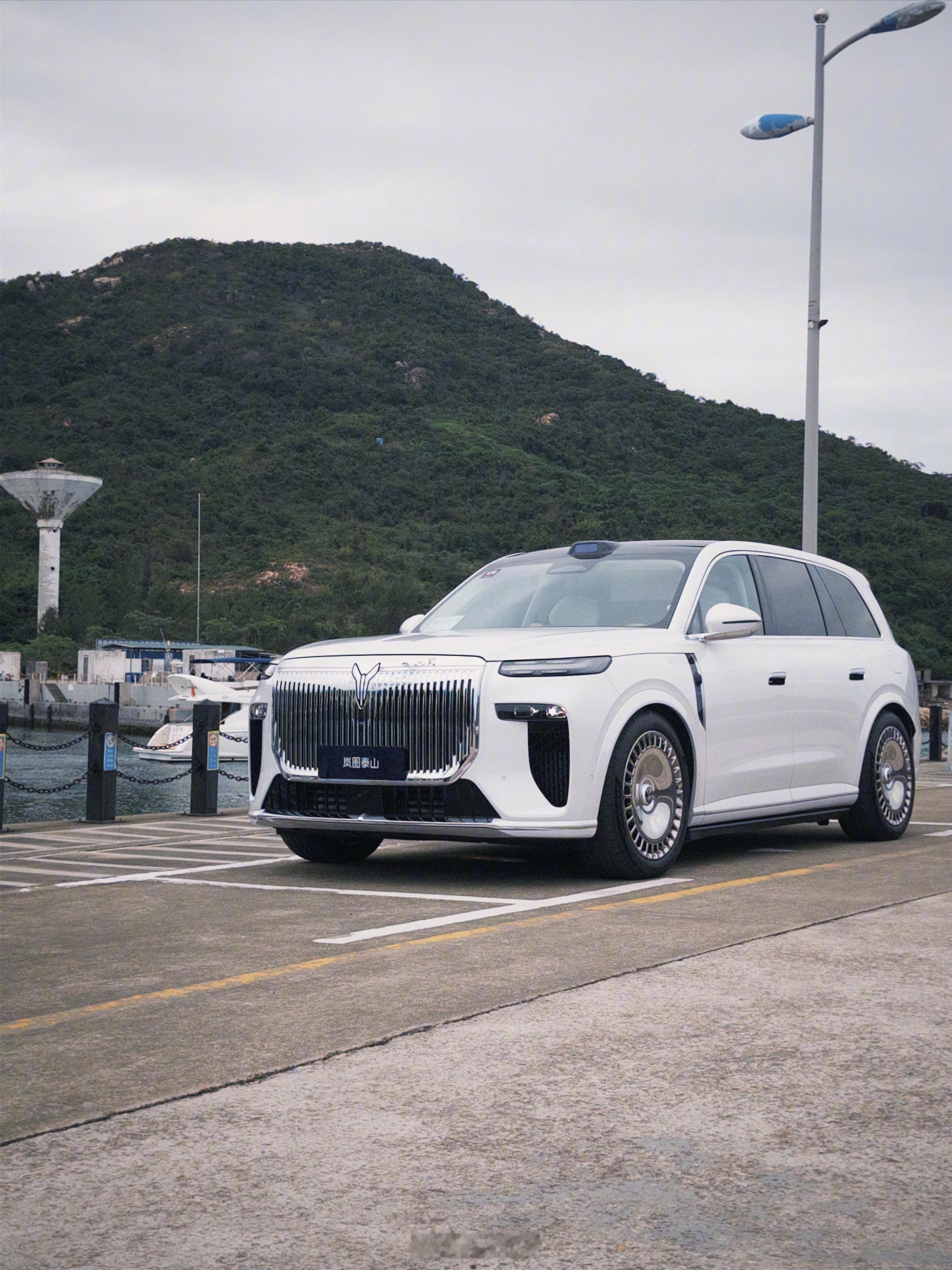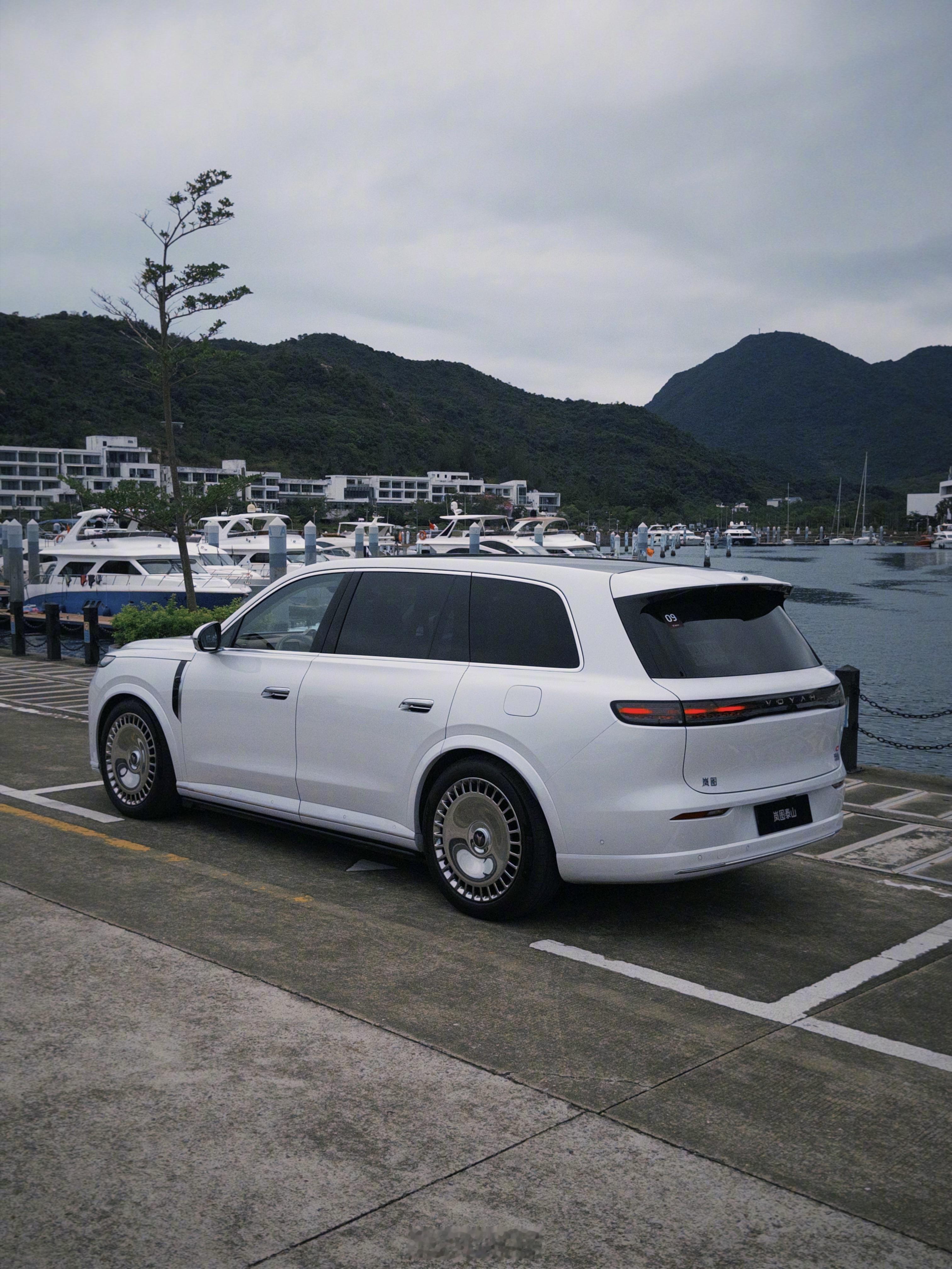 特意选了白色泰山拍~白色配大饼太雅了,不会出错的一个搭配,岚图选的地方游艇码头也很棒