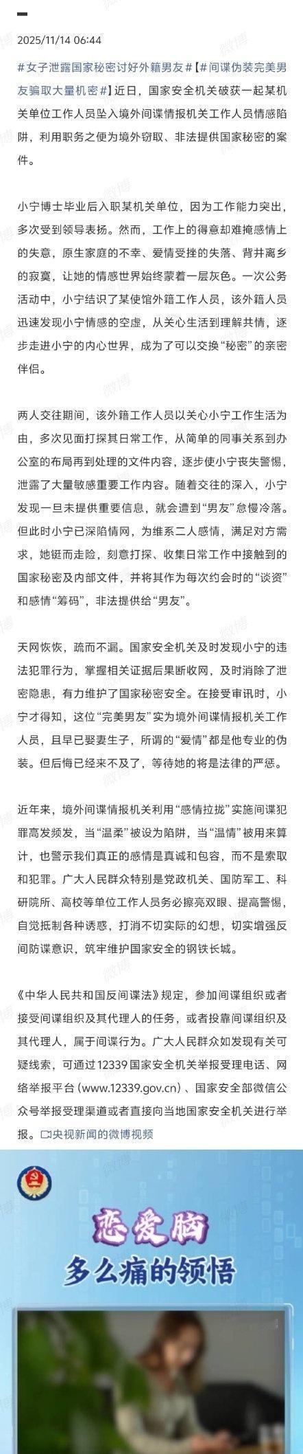 这么高学历竟然恋爱脑 多么痛的领悟啊,国家机密比那感情重要得多啊,这怎么还拎不清