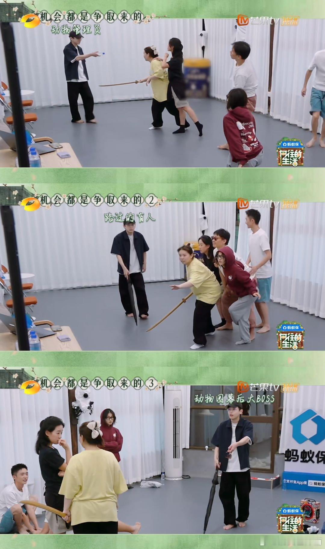 彭彭创排时认真劲儿打动了导演叭?主动说想早点上场,结果导演直接来了个买一送二!一人扛起三角色!彭彭表面淡定,内心估计乐开花了!路人表示:这综艺效果和演员态度都拉满了