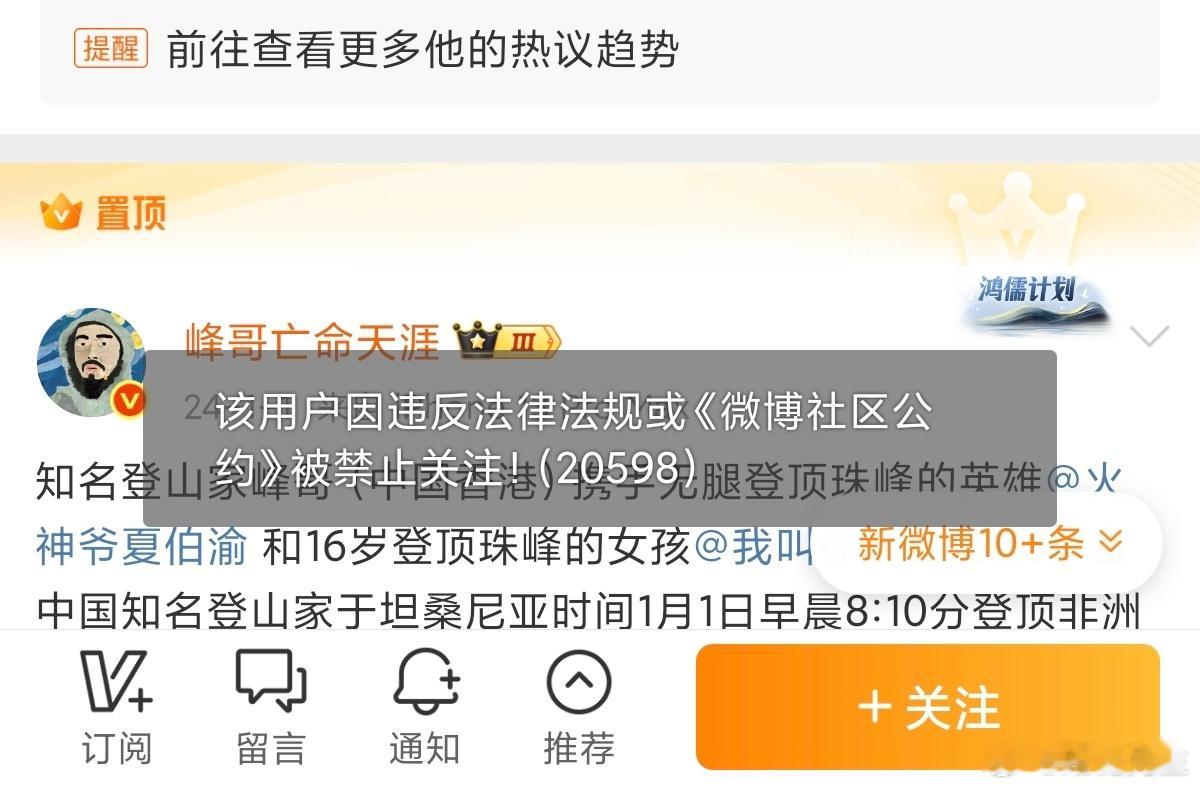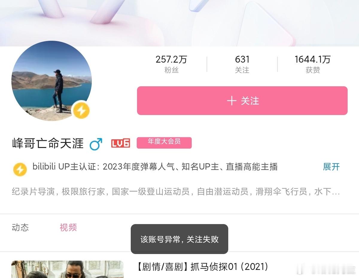 “峰哥亡命天涯”因违反法律法规,多平台账号异常。