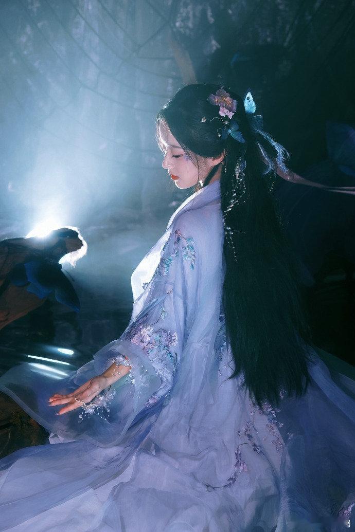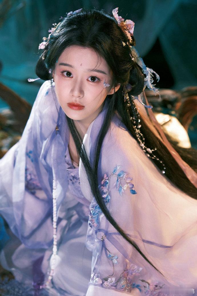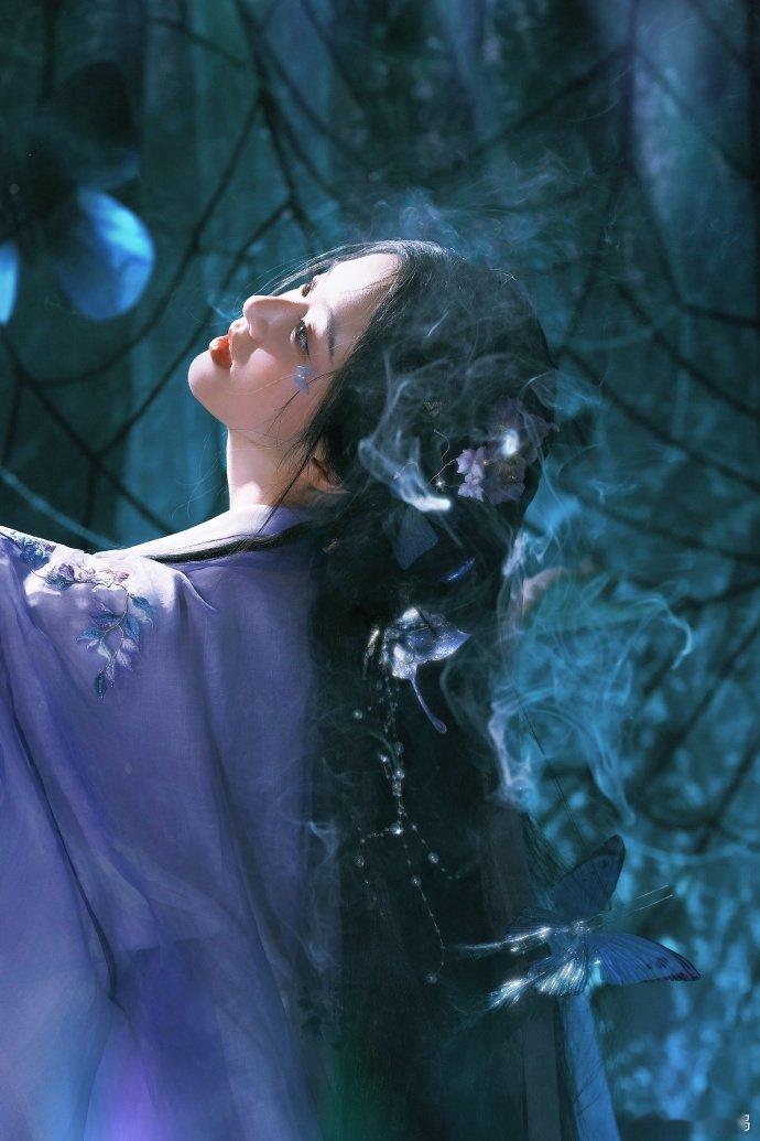 必须夸包上恩的古风适配度!淡紫色汉服穿在身上毫无违和感,发间小花与耳饰精致加分,小蝴蝶造型添灵气,搭配聊斋感背景,每一帧都美到想分享