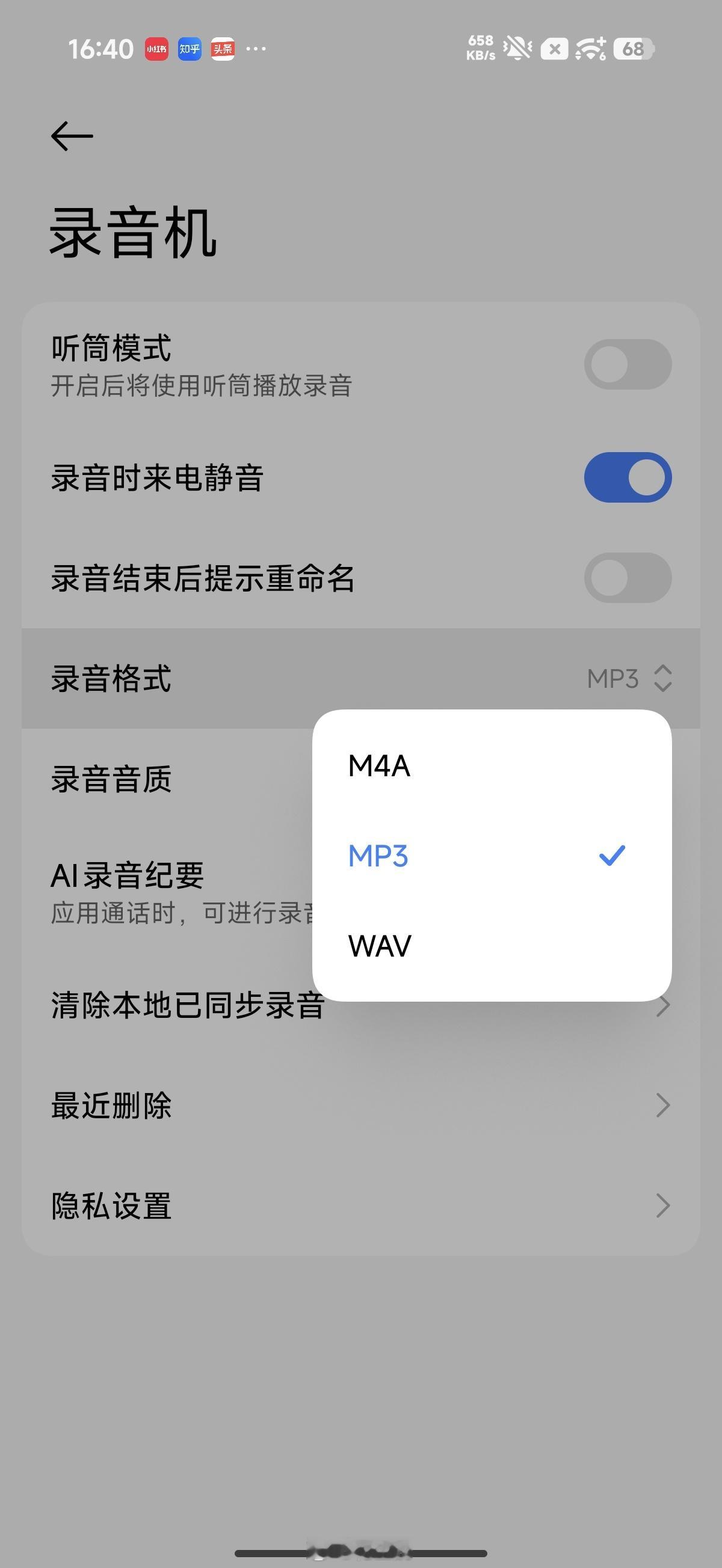 不知道大家有没有关注过手机自带的录音机?像小米和OPPO这种做的比较好的,可以选择格式和音质,还有适用于不同环境的模式荣耀分成了两个选项,对应2个格式;vivo的话,就只有录制过程的人声增强按钮了