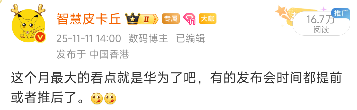华为热度是真高,有的发布会提前一天,有的发布会推迟下个月。潜望模组和大家透漏过,与pura系列有区别,全新架构。大家想要的20G内存,华为Mate80和大折叠都有。重磅新品还有大平板 PC。性能机还没有落地,算力堆叠和交火有新东西。