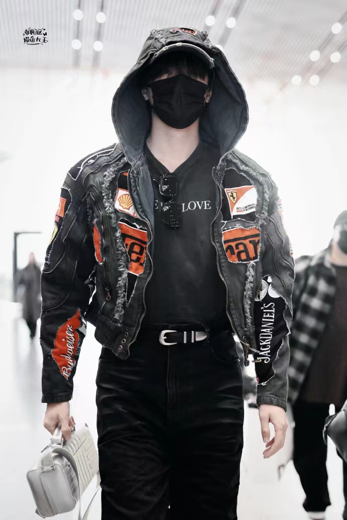 展轩出发赣州,展轩机场潮男look,谁来懂一下这个展轩不规则外套+褶皱黑裤,满分潮男感的look,一整个有被帅到啦~