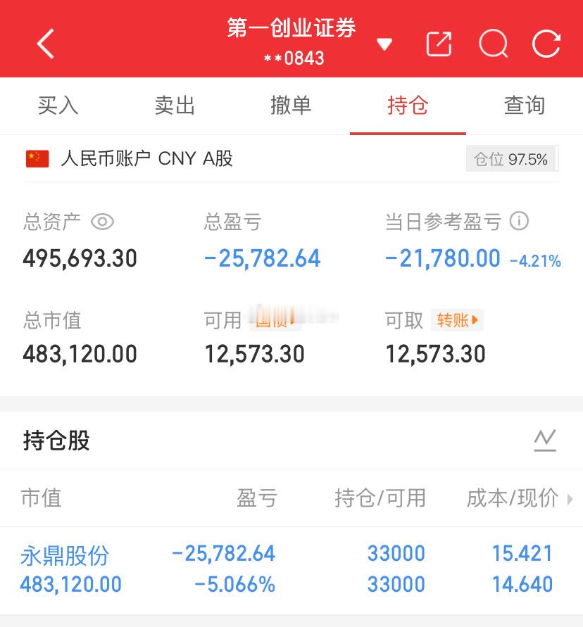 爱股程炒股日记40w本金挑战一年翻5倍,第( 52 )天!总资产:49w当日参考盈亏:-2.1w目前持有:永鼎股*特别声明:本文仅是个人观点及操作不构成投资建议,仅供参考!