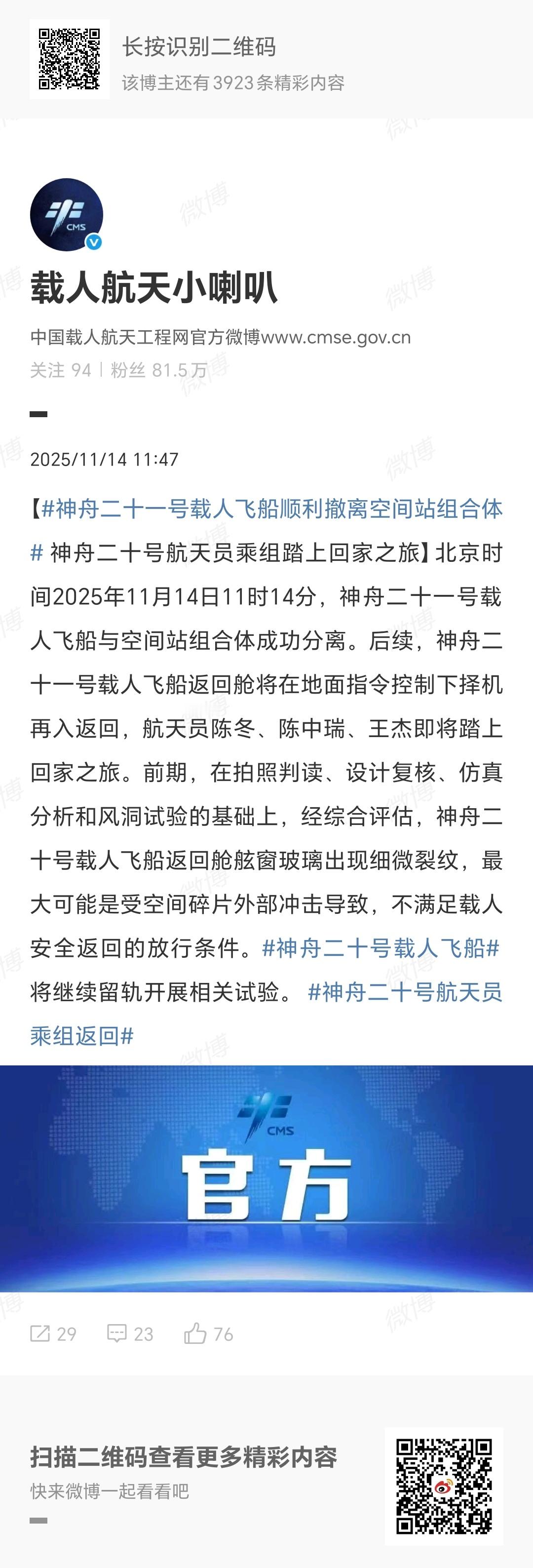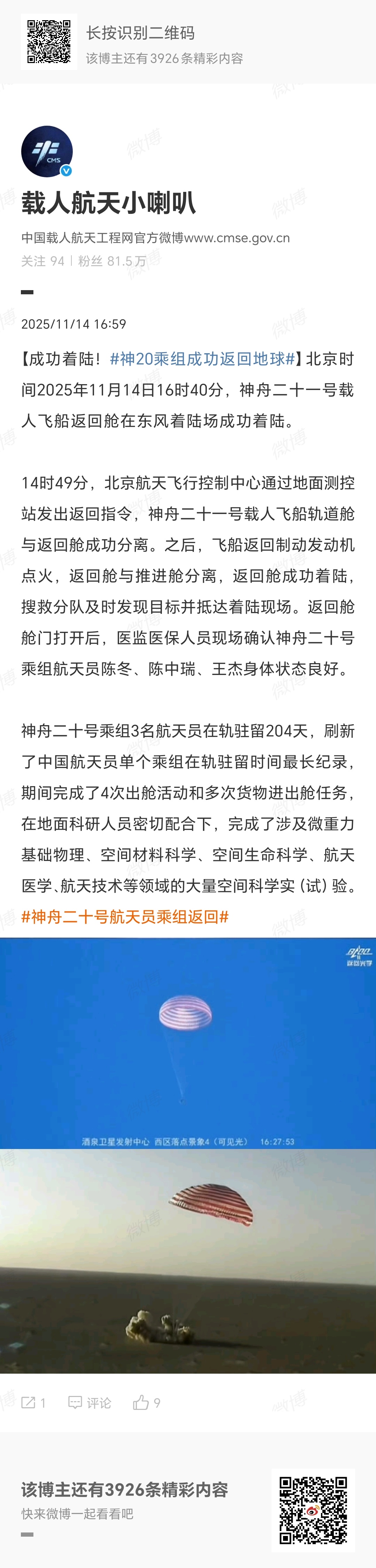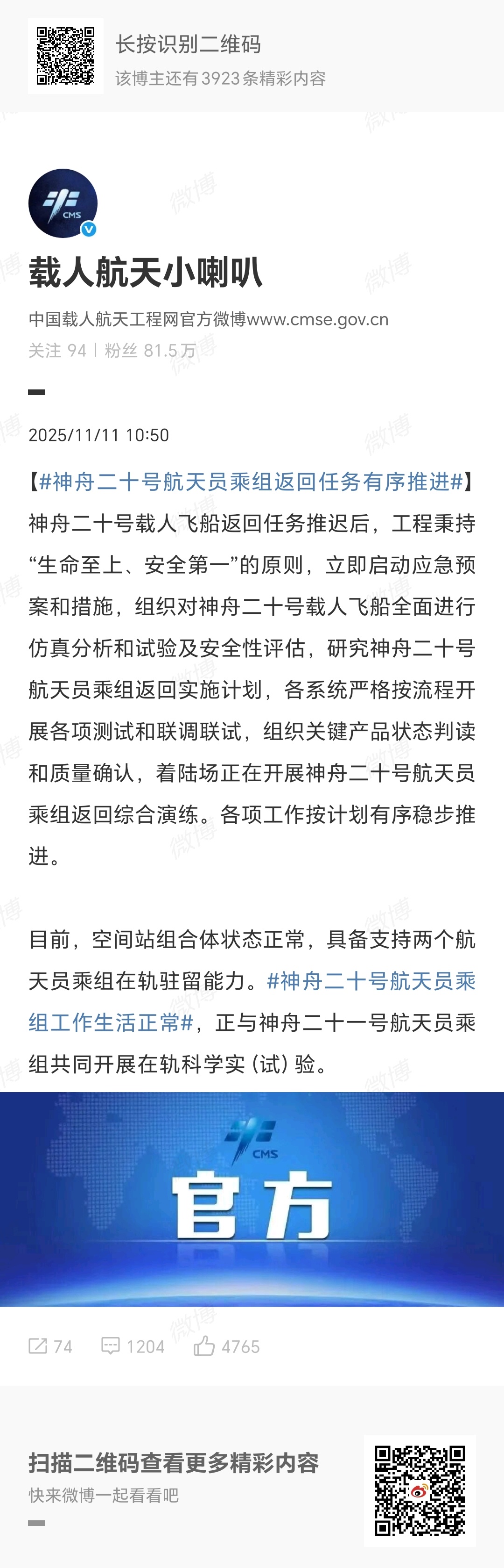 “生命至上、安全第一”一次可以载入航天史册的应急情况处理欢迎神舟二十号航天员乘组平安回家