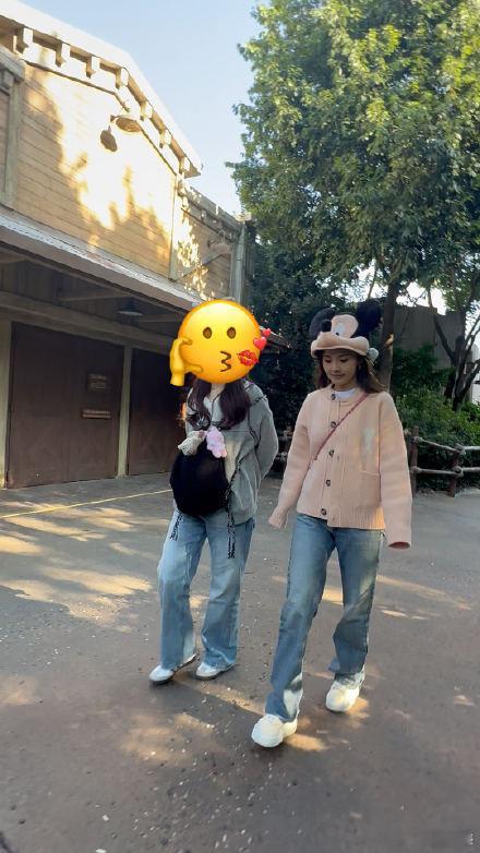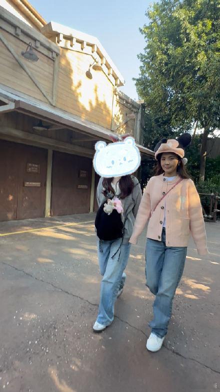 张佳宁迪士尼状态绝!米奇头套+粉针织衫超甜,盯新鲜事物、和朋友拍照,亲和又有活力