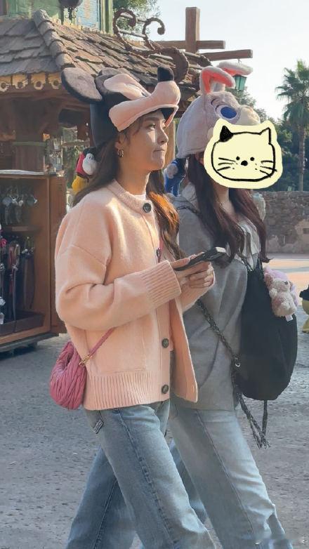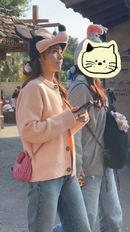 张佳宁迪士尼状态绝!米奇头套+粉针织衫超甜,盯新鲜事物、和朋友拍照,亲和又有活力!